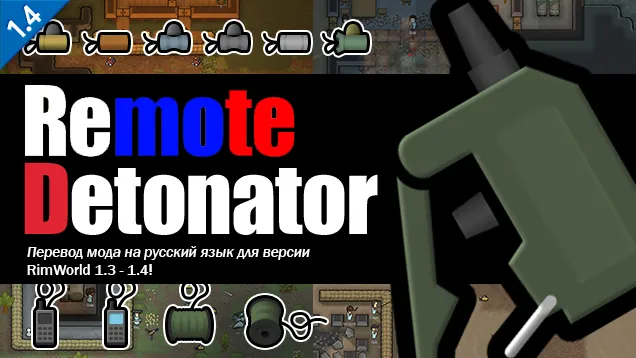 Мод, для которого делался перевод: [url=https://steamcommunity.com/sharedfiles/filedetails/?id=2777403116&searchtext=Remote+detonator]https://steamcommunity.com/sharedfiles/filedetails/?id=2777403116&searchtext=Remote+detonator[/url]
