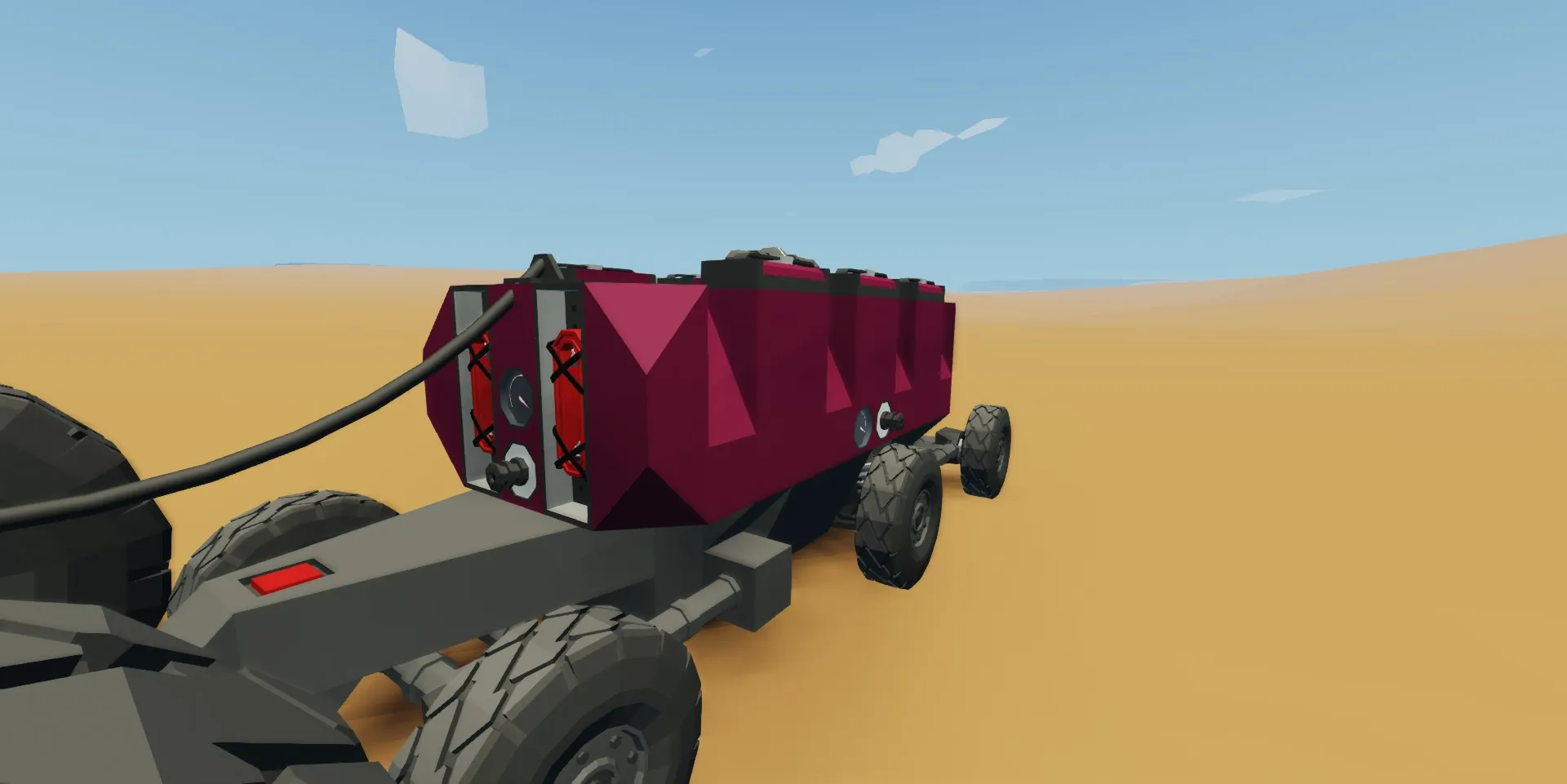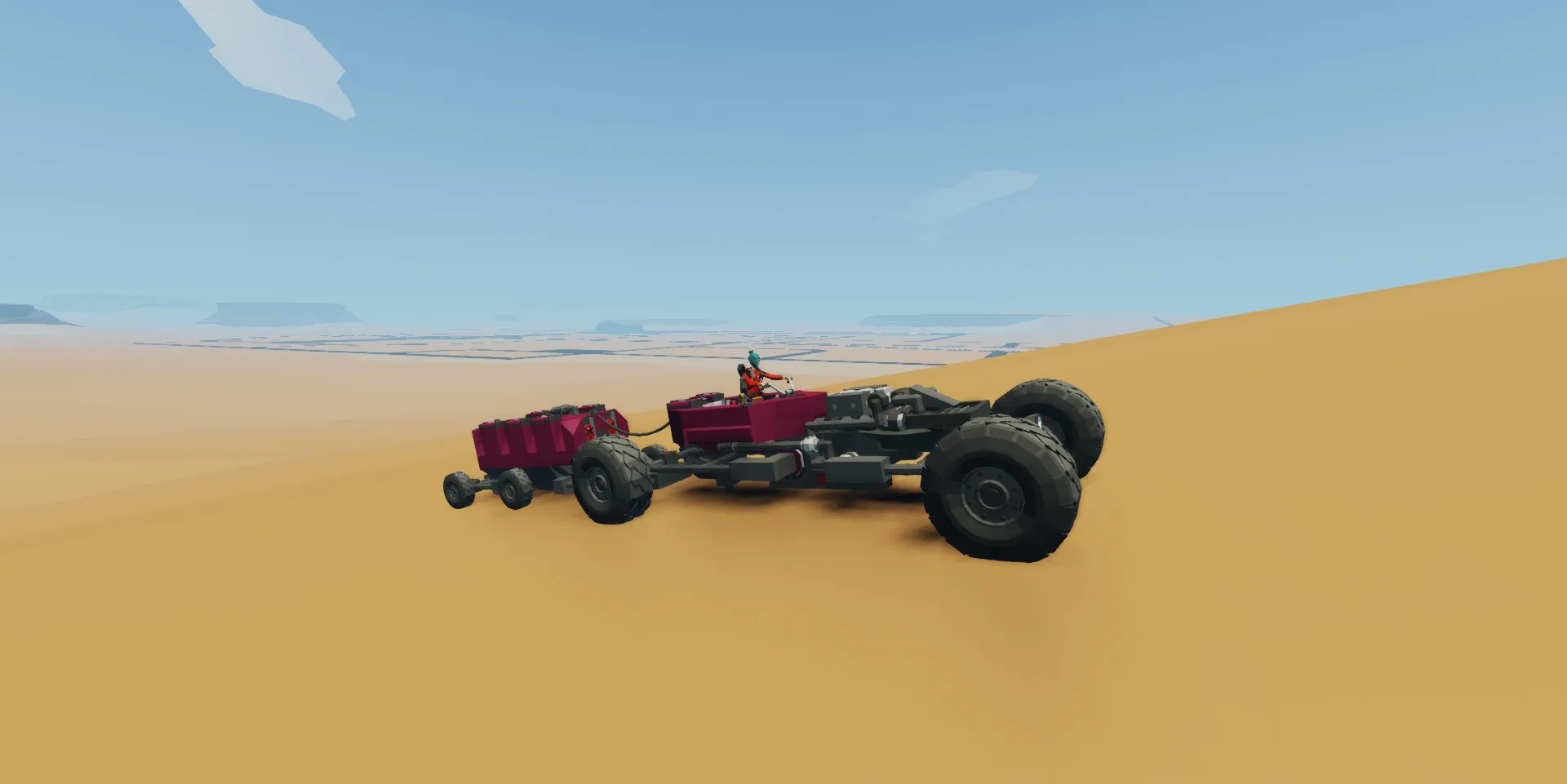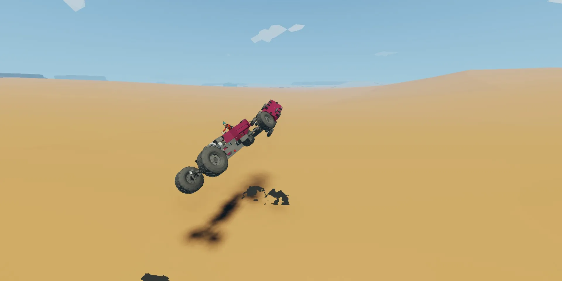 The Bouncing Betty a jumping car it can jump its exceptionally light can go 130kmh when not towing the trailer it was designed by one of our chief engineer Jauden.