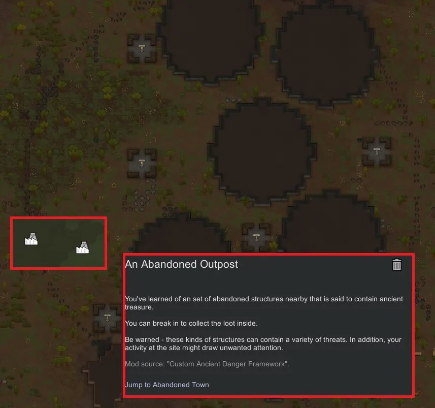 This mod introduce a new type of ancient danger into the game. Similarly by chance you may find it on your base map or encountered mini map. The goal is the same like in vanilla, open it, beware the traps and take away everything as much as you can.
