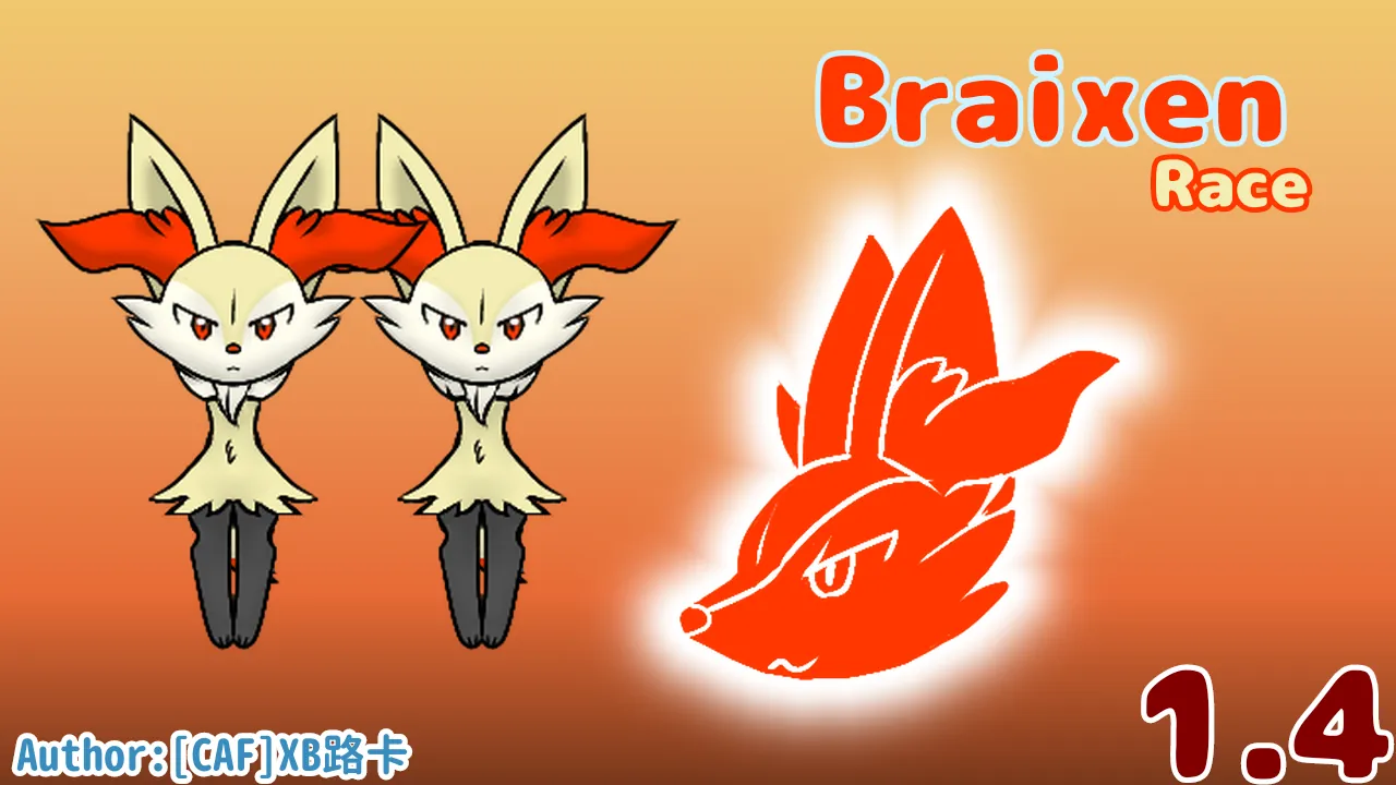 Braixen has white hair on the face, hands, neck, and chest, and yellow forehead, ears, and tail.