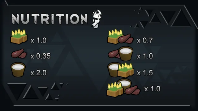 [*] Require special diet, normal nutrition from vegetables, more from animal products, less from meat (lavish meals, survival meals and pemmican will always work normally, ignoring ingredients)