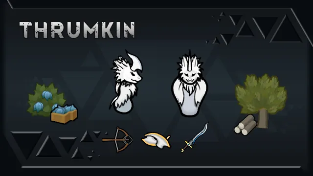 A large, graceful humanoid creature, with long white fur, a large sharp horn and short simple tail. Their striking resemblance to Thrumbos gave them their name and leaves no doubt to where this race might have originated from.