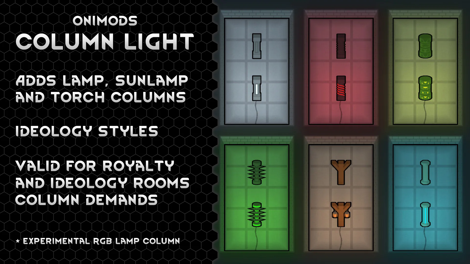 [b]Onimods - Column Light[/b] adds new columns with integrated light sources, the standard “lamp column”, a mix of the basic column and lamp, the “sunlamp column”, a basic column with an integrated standard sunlamp, and the "torch column" and "darktorch column" for the situations when electricity is not available.