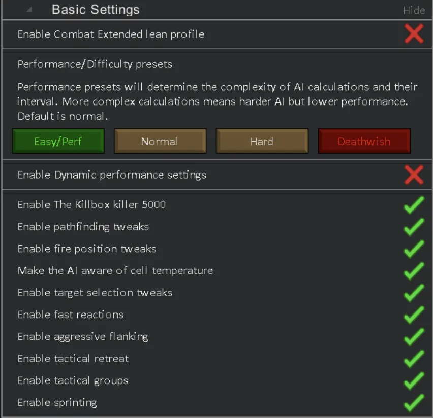 [*] [b]Dynamic Settings[/b] will adjust settings automatically to achieve the best TPS and best AI combat performance!