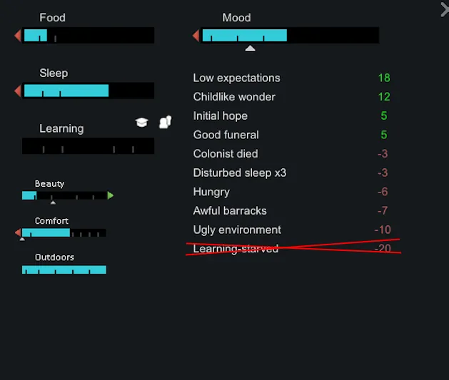 A small patch that prevents children from having a debuff when starved of learning (currently reduces all stages of learning to 0, including buffs and debuffs)