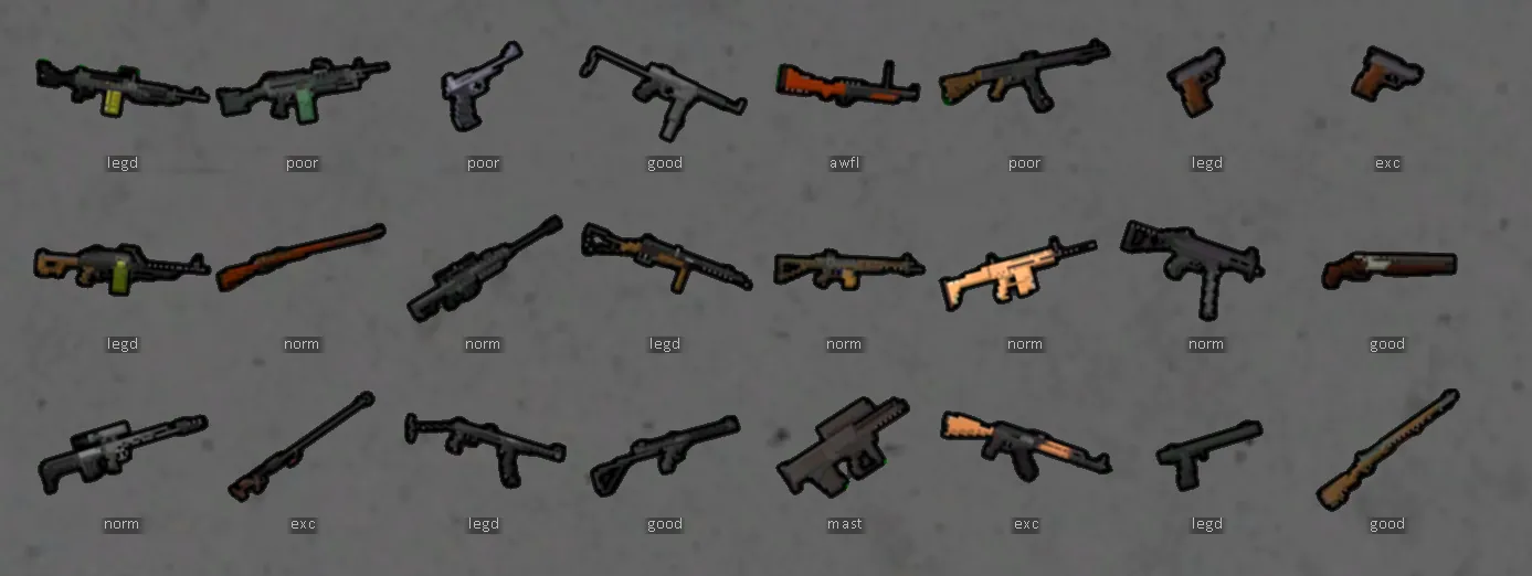 As well as extra aspect to differentiate the weapons such as tacking the materials of weapon furniture into account in item recipes with the aim to ensure that there are more tangible advantages and disadvantages to using one weapon over others without obvious go to weapons and as few iterations of "same stat block, different texture" as possible.