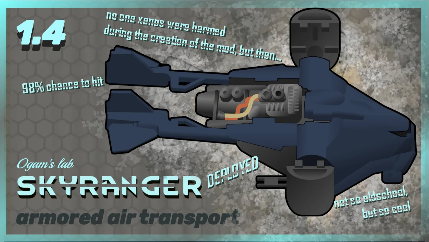 This mods add the Skyranger — a VTOL troop transport aircraft utilized by XCOM — as a new vehicle using the Vehicle Framework.