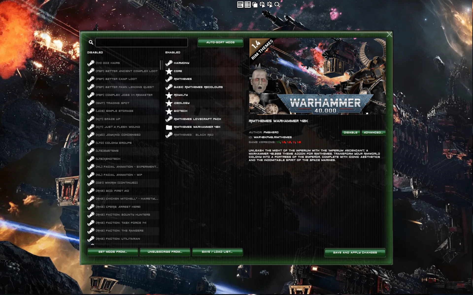 Unleash the unyielding might of the Imperium upon your RimWorld colony! Embrace the Warhammer 40,000 essence with the RimThemes addon, transforming your settlement into an impregnable fortress of the Emperor himself. Let the iconic aesthetics and the indomitable spirit of the Space Marines permeate every corner of your colony.