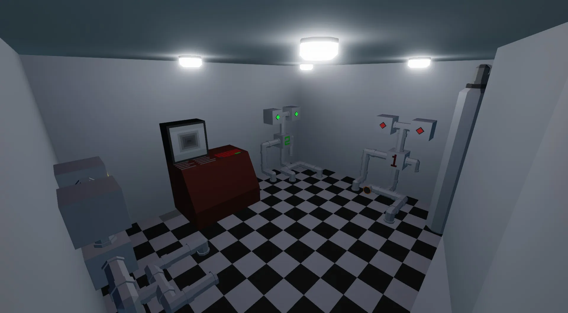 Beyond the final door lies a forgotten safe room, where decommissioned units V1, V2, and V3 remain.