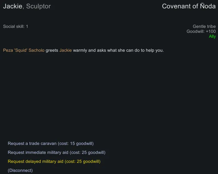 Since these factions do not have drop pods, troops will be sent out on foot. This will take them up to (2) days to arrive (changeable in settings). Their reinforcements will be slightly larger then drop pod military aid.