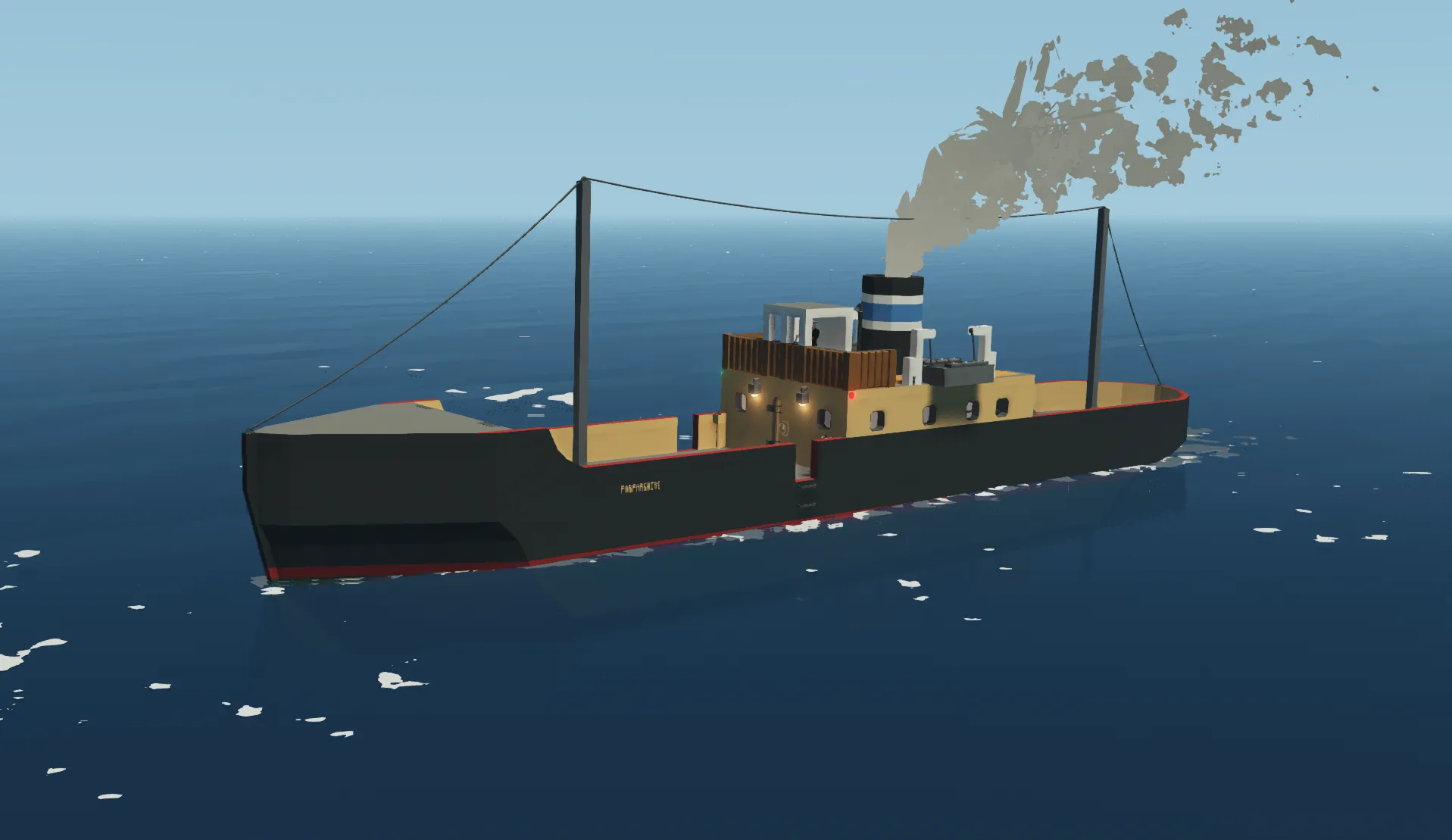 how to start: go to engine room and hold starter button built in the late 40s to replace an aging steamship of the same name -inspired by various coastal freighters yes i know the lifeboats suck
