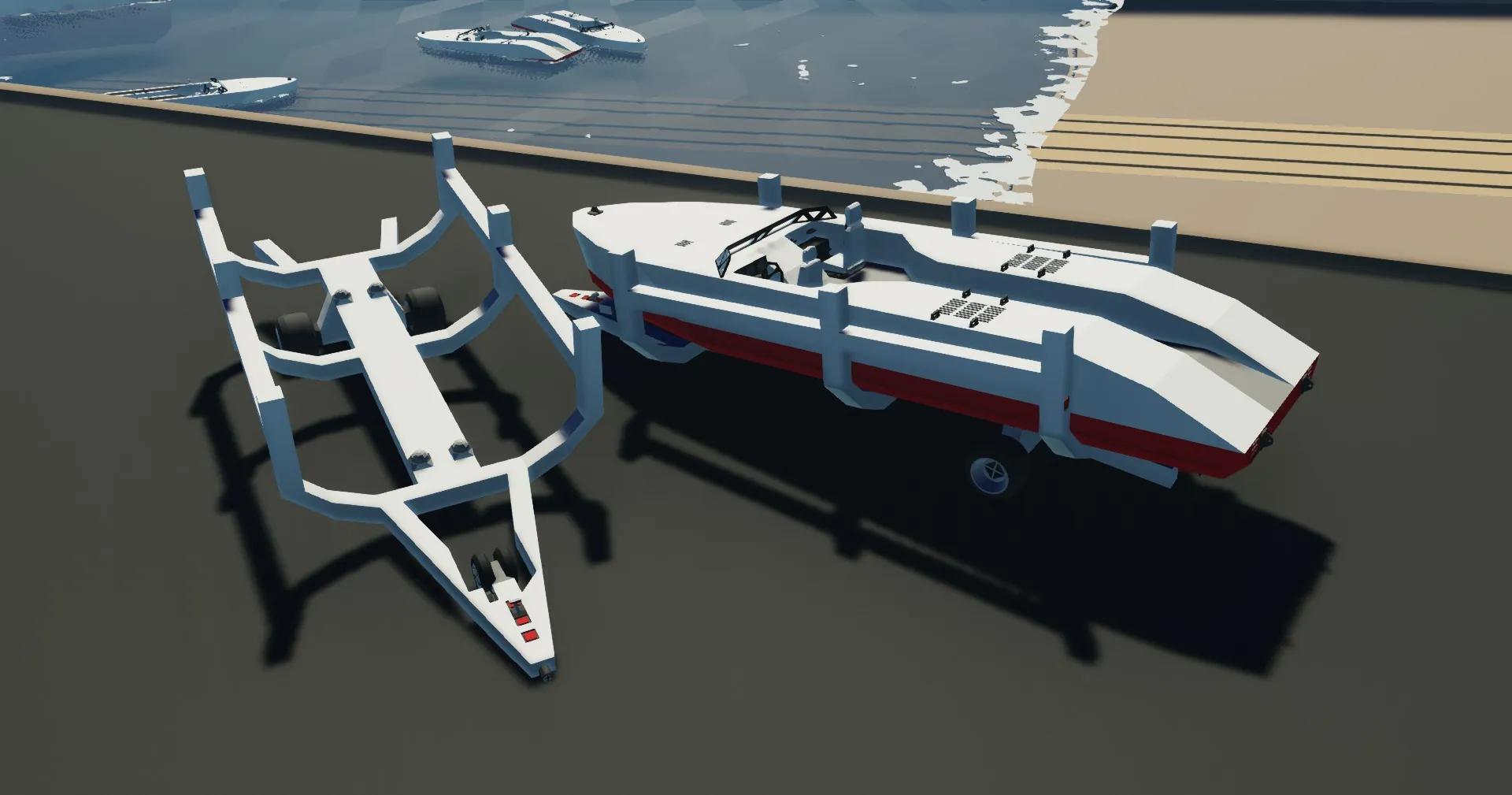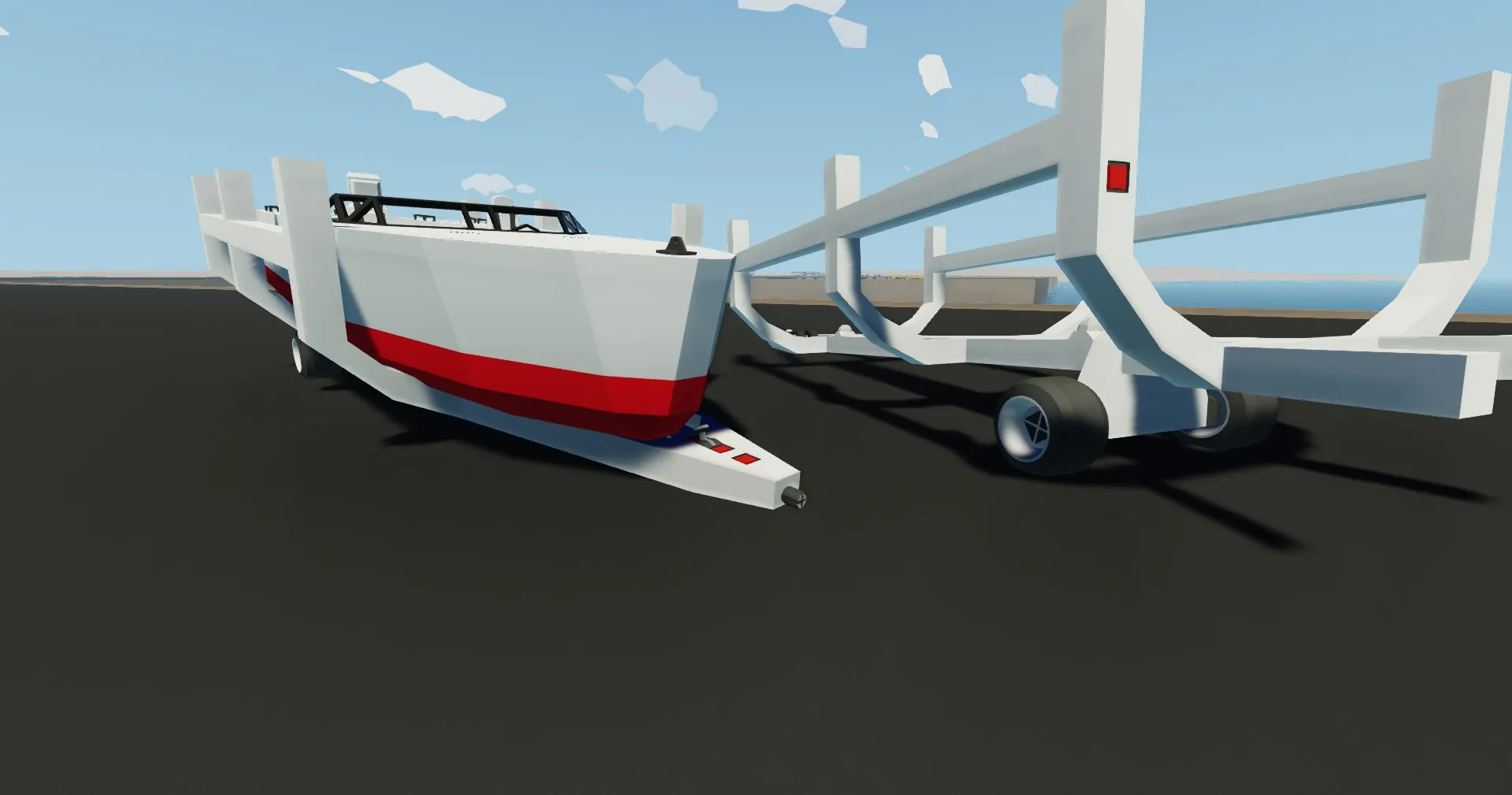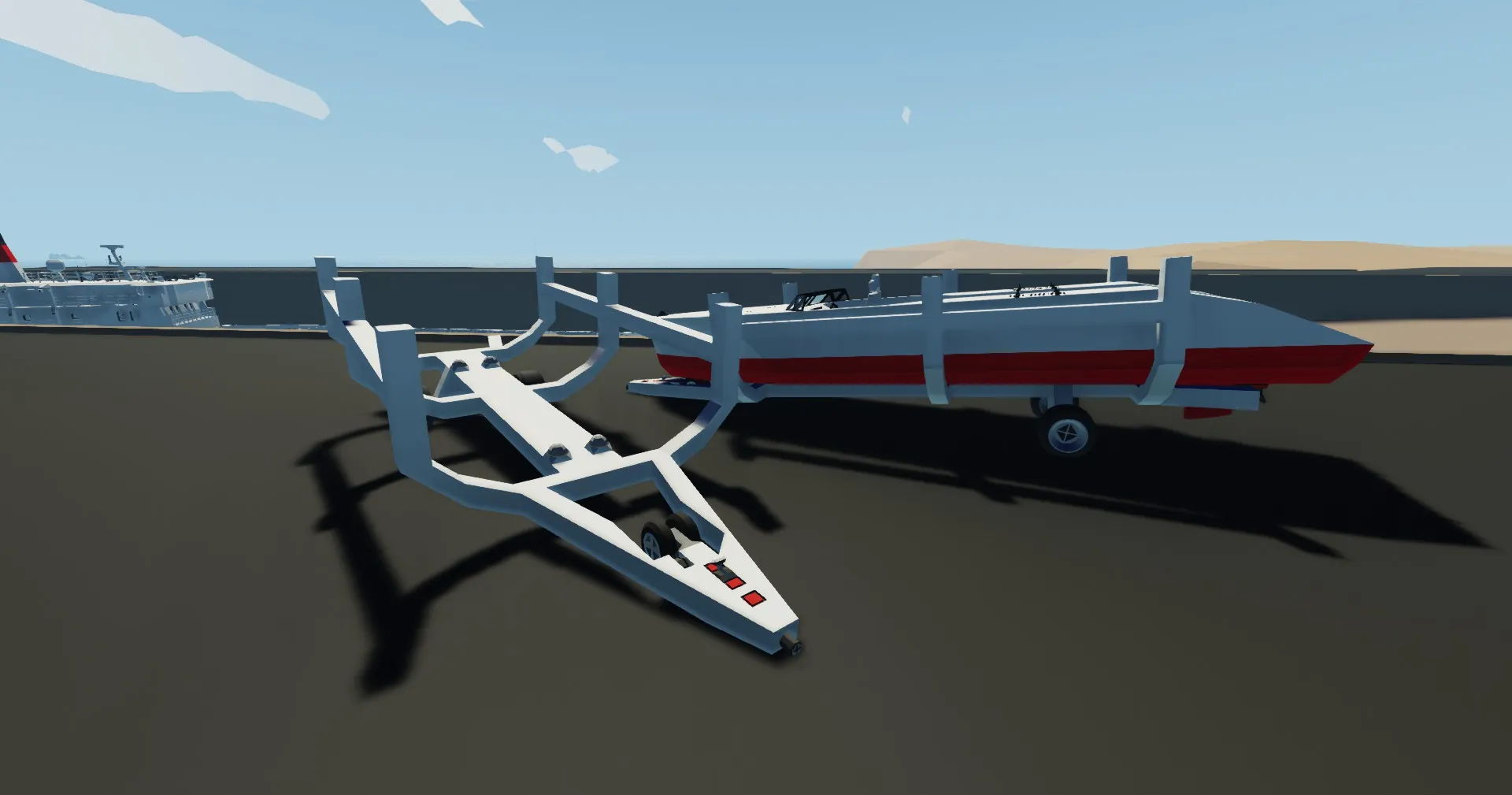 Trailer for my luxury speeder boat, it only took me and my friend 3 attempts to get it on -then he flipped the car and trailer and it fell off...- so you shouldn't struggle too much.