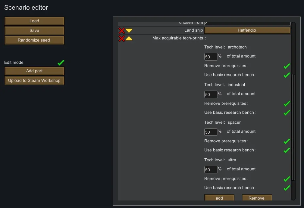 2.add a new scenario called "Max Acquirable Technology Blueprints" and config it like how the picture shows above. Recommend to set all the numerical values into 10%.