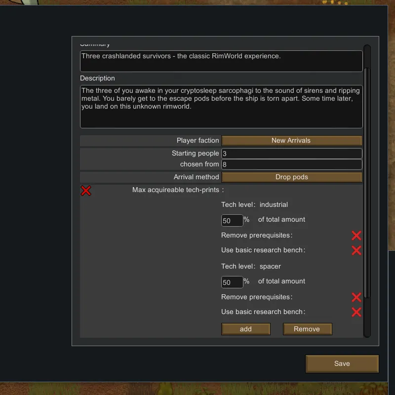 This mod adds a new scenario, which gives you access to a limited variety of technology blueprints during the game.