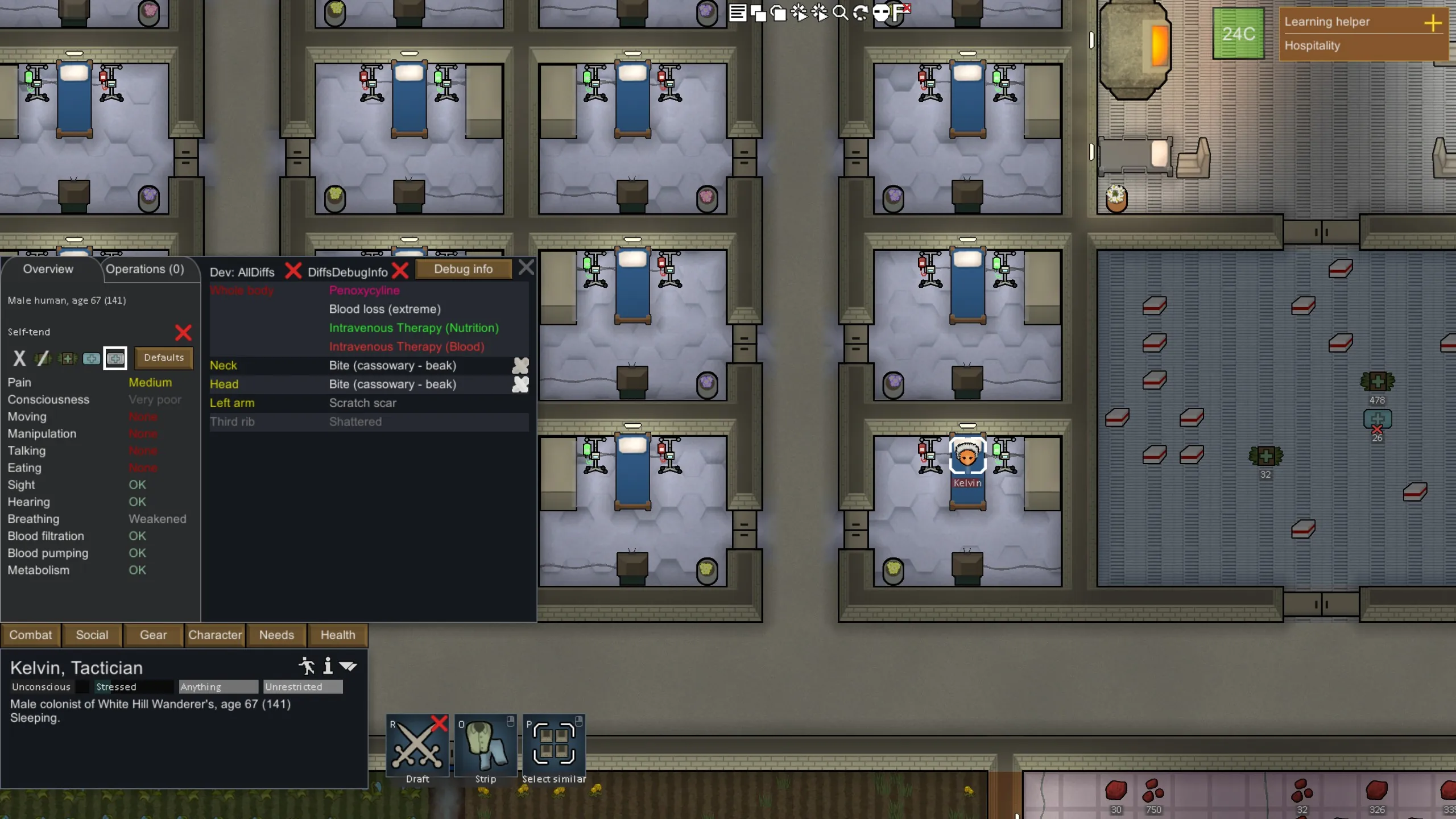 - Colonist's who are in extreme pain that causes them to become downed will sometimes get out of bed if they are under the influence of the painkiller drip. Once the effect wears off they will become downed again FIXED!