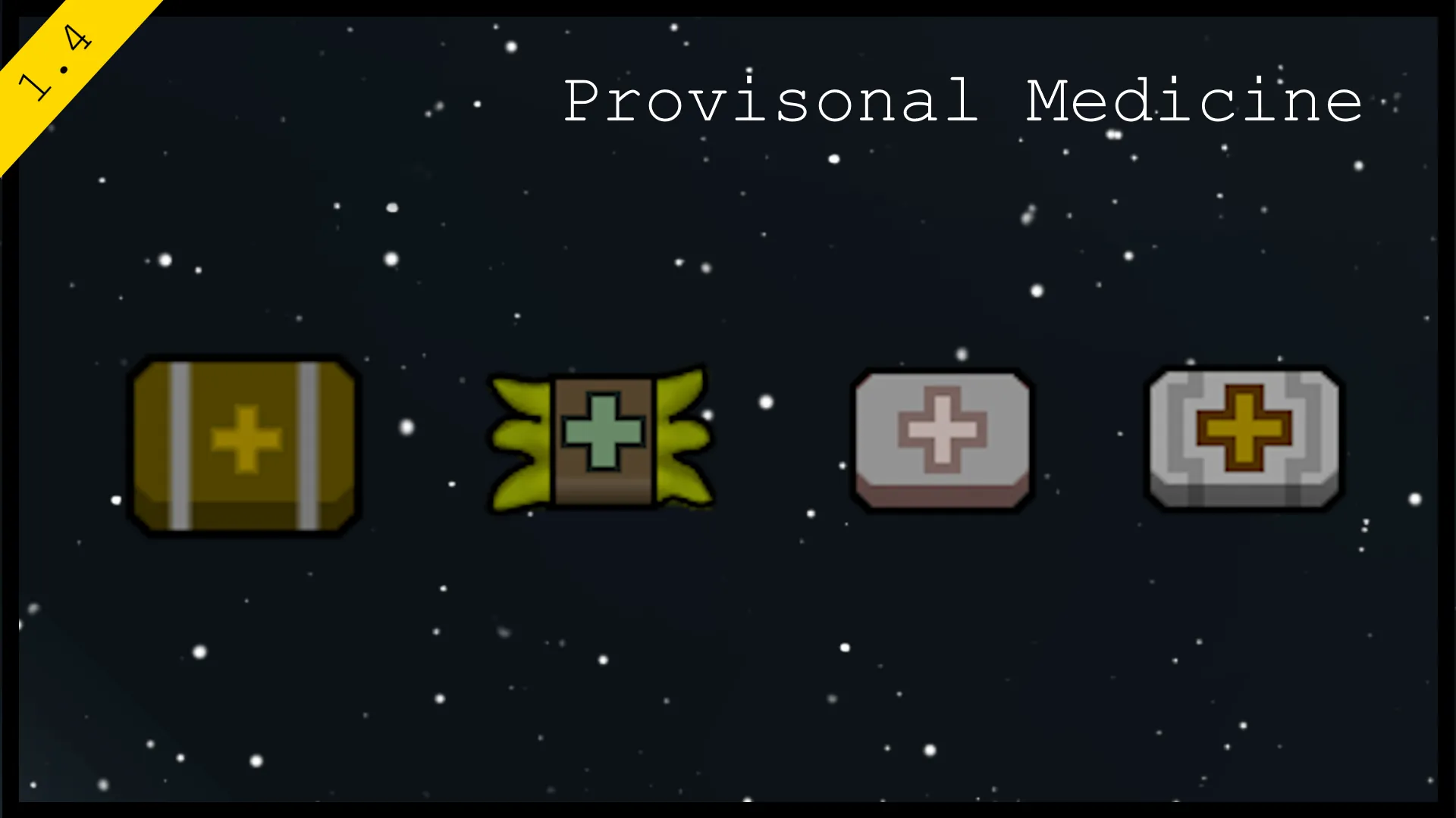 Adds various options for early to mid game medicine. All of them require no research to get and can be crafted as soon as you get the tables or spots to craft them. These med kits are meant as a way to salvage a poor start, for example, your colonists have poor stats or you used up all your supplies during a raid. If you want to fight to keep your pawns alive during terrible situations these med kits are for you.