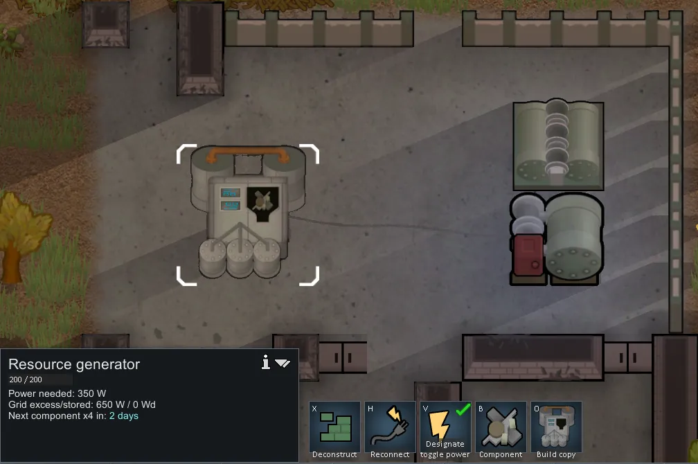 Generators spawns items with a value equivalent of 75x Steel every two days as long as they have power.