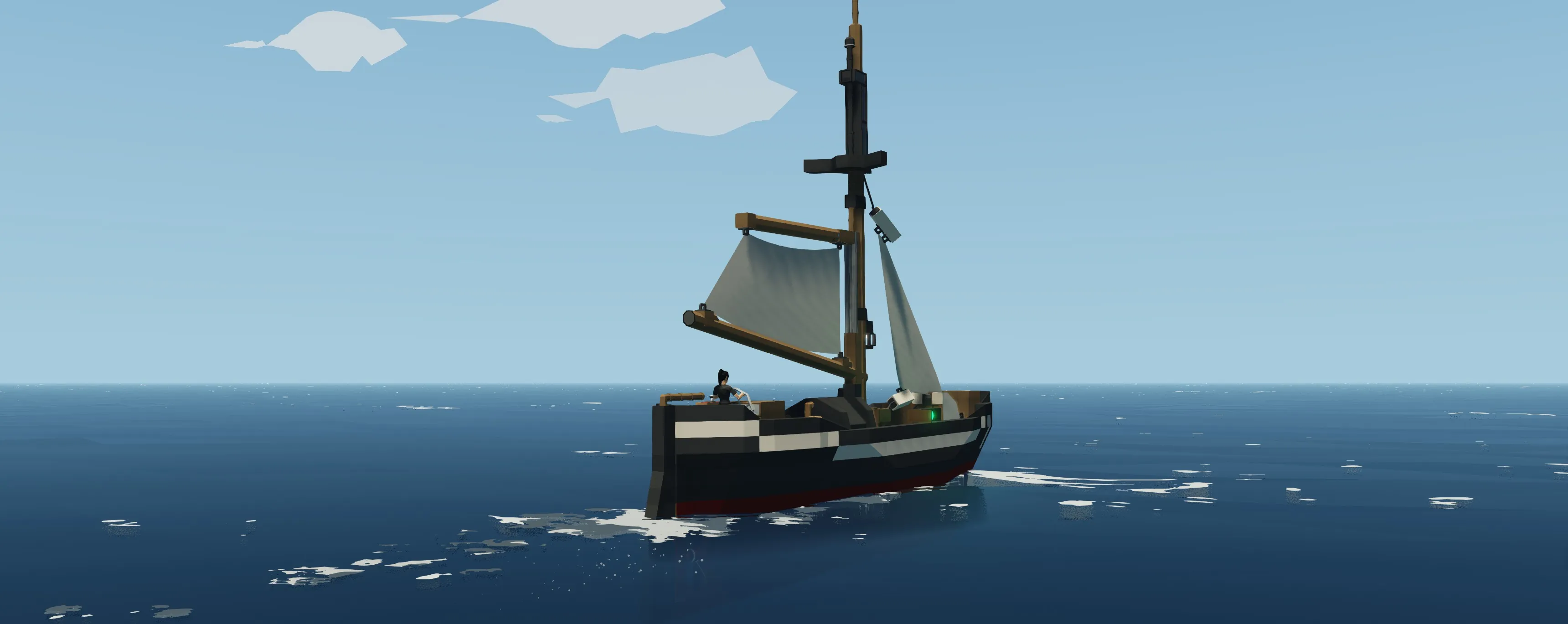 This boat should be used Either on low or high physics. Both have issues. High: She freaks out in waves/other ways. Low: Her aft sail freaks out. Personally id say use High but dont put her in wind!