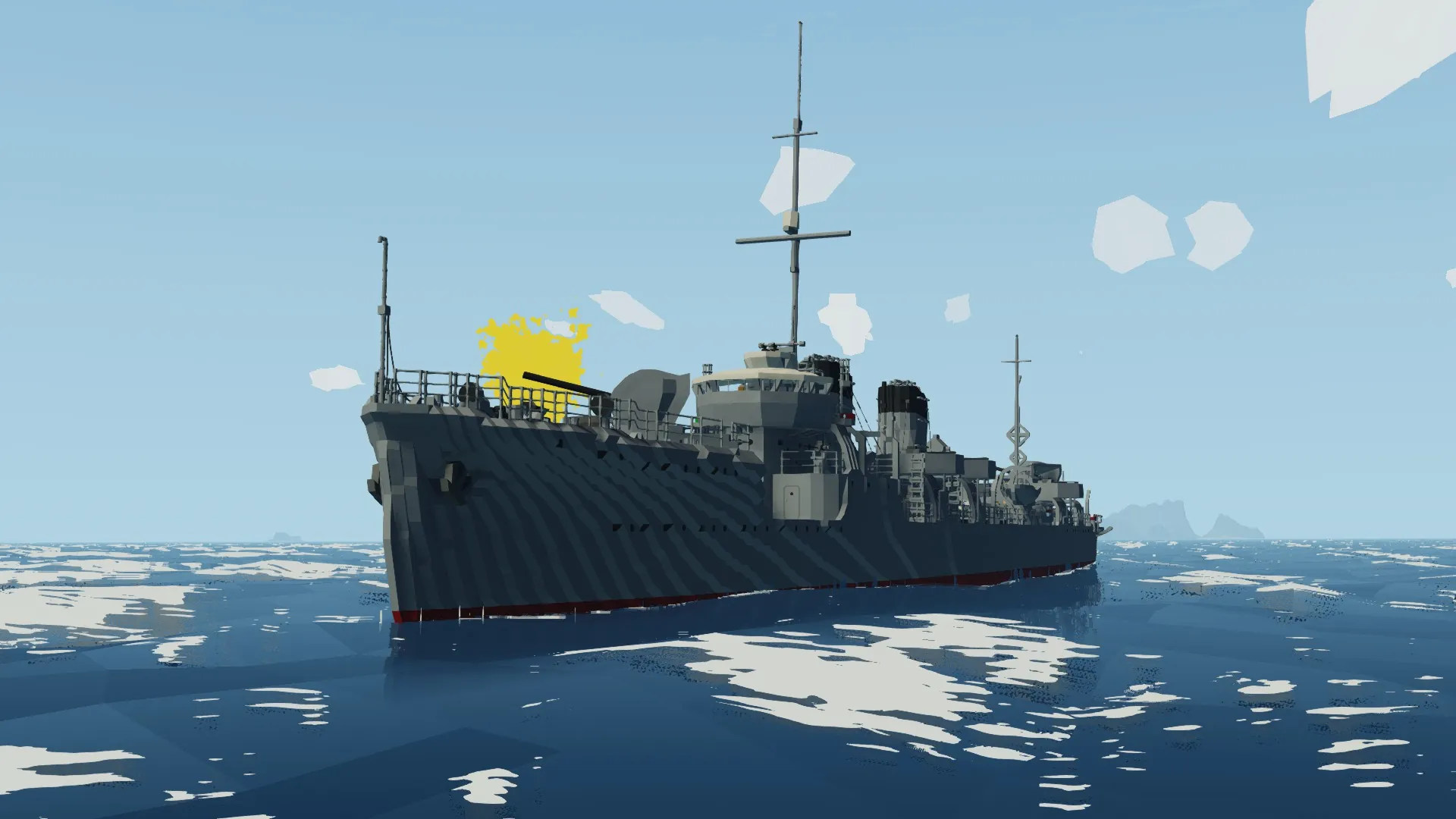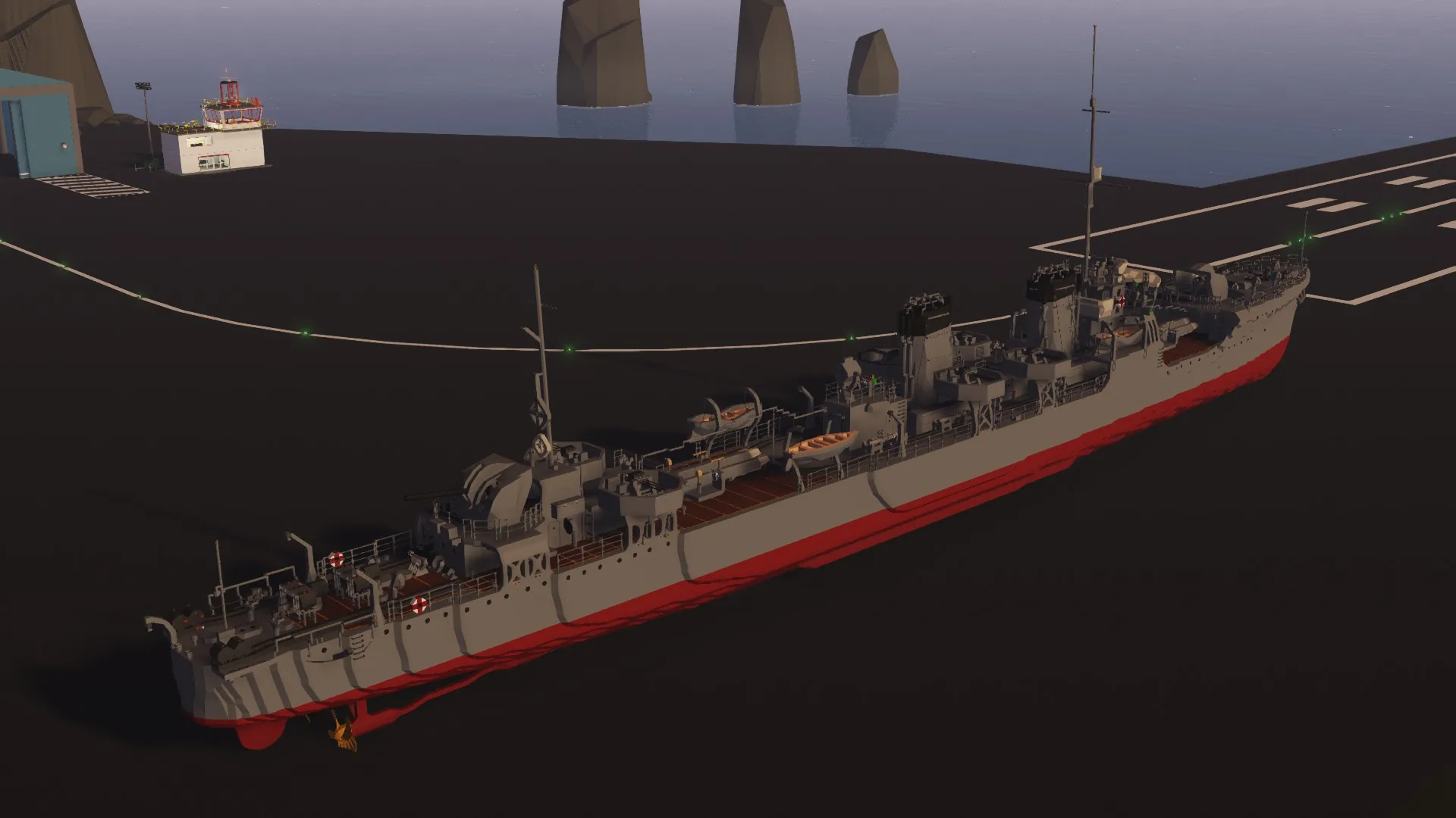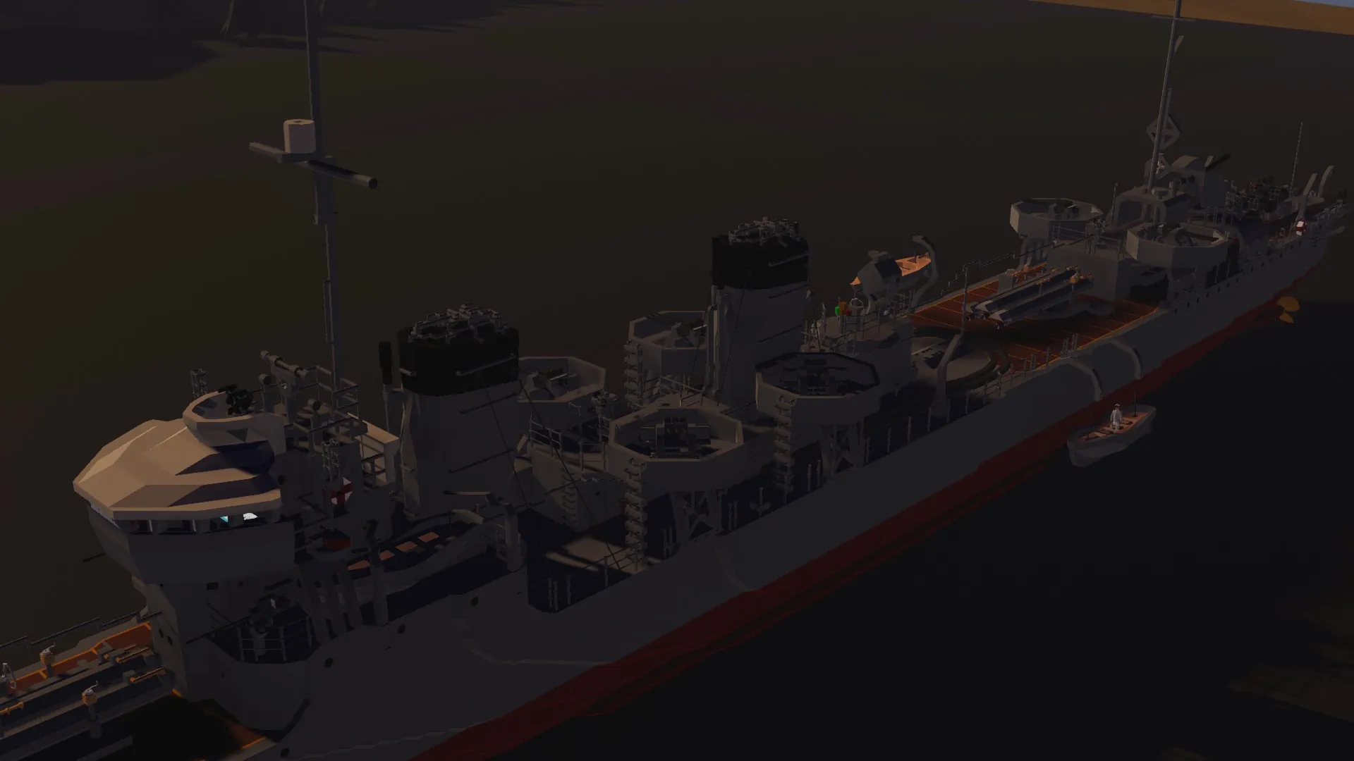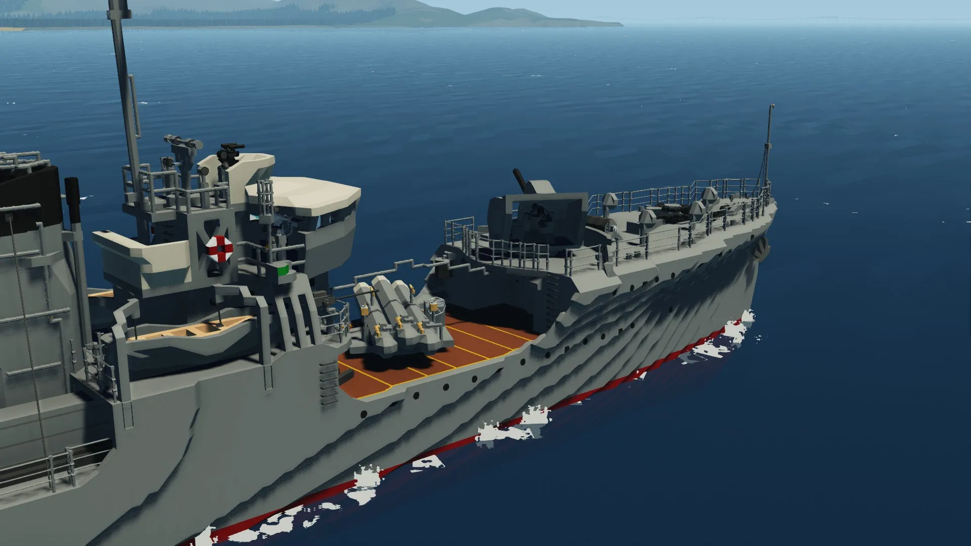 The IJN Mutsuki has been recreated after months of development. For the best experience, I recommend setting your physics to Low. The torpedo launchers and depth charge racks are fully functional. You can control the main guns from the helm, and there are monitors inside the bridge to assist with aiming.