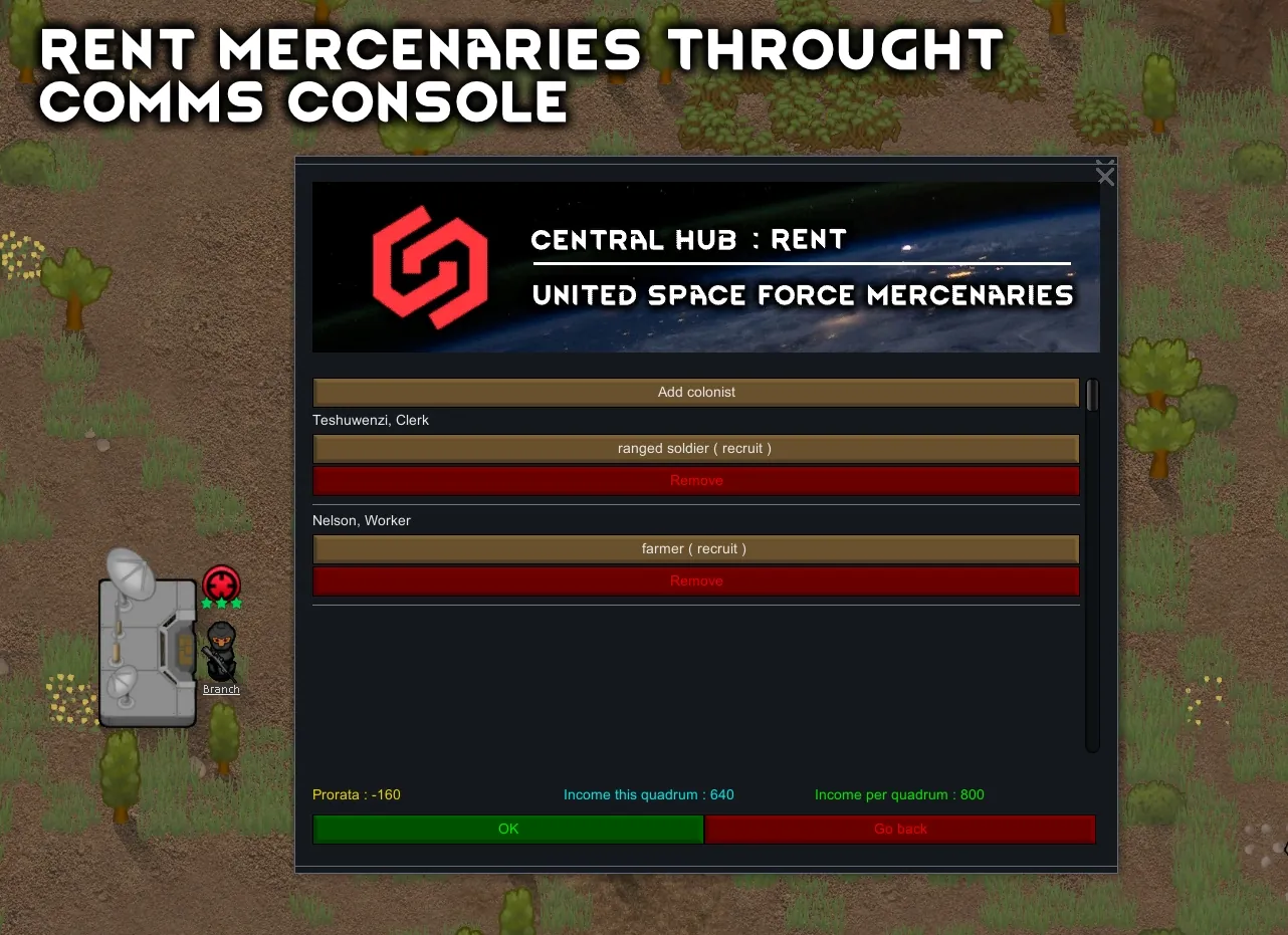 [*] Earn money with your rented colonists as mercenaries (warning : they can be injured and killed).