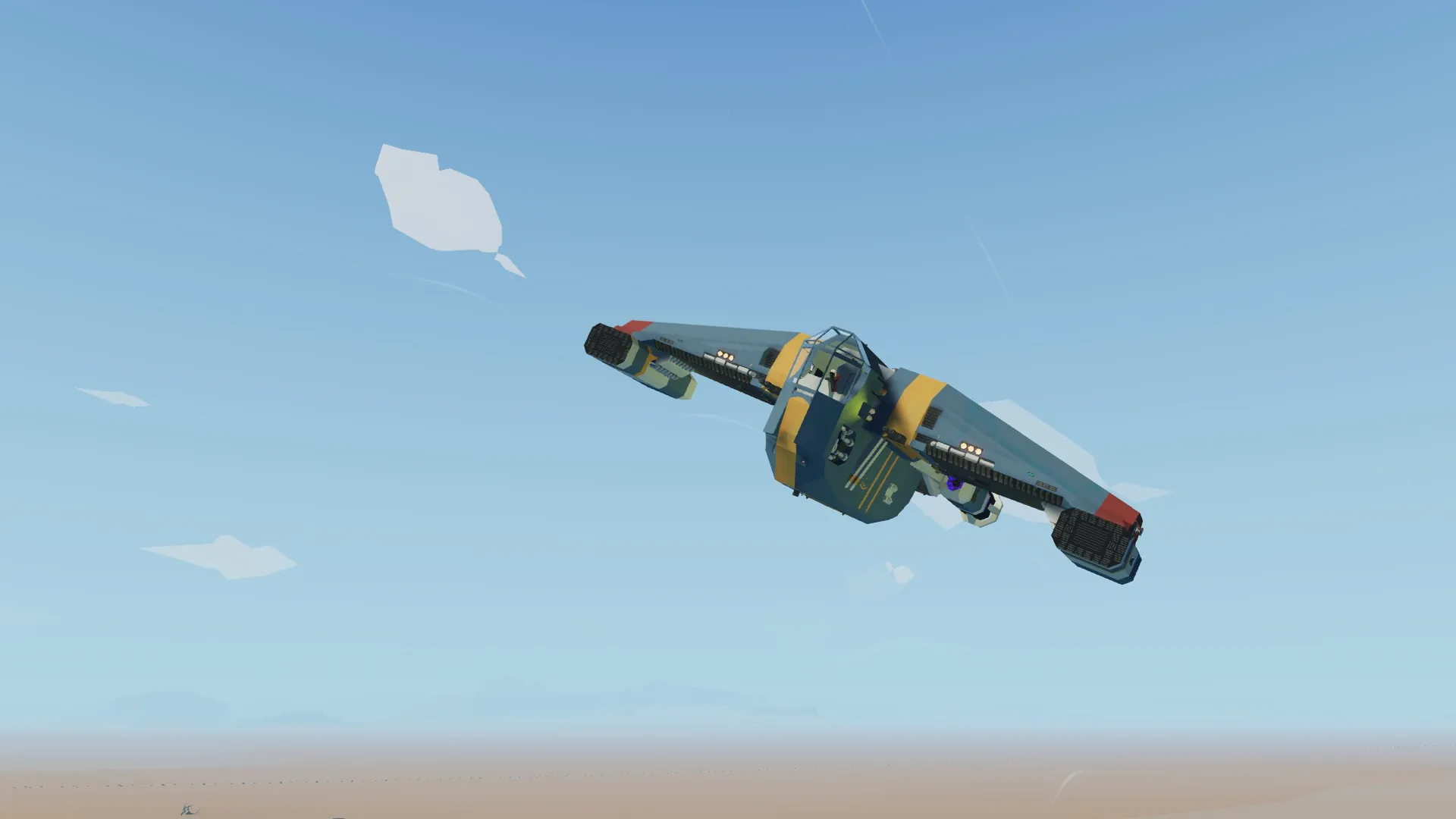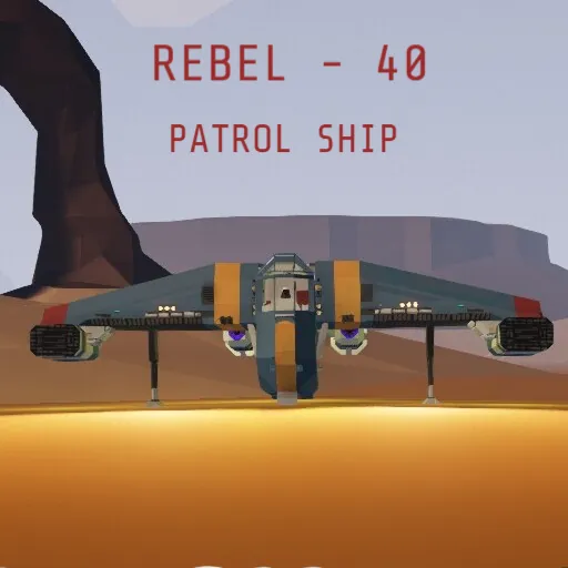 The Rebel-40 patrol ship is used to perform simple tasks. Despite the fact that the ship is outdated, it still performs its functions. It has a compartment for transporting suspects (includes 6 seats). Average speed is 620 km/h. Maximum speed is ~ 1000 km/h. This modification excludes the possibility of flying into space and is intended only for flights in the atmosphere. The ship has its own characteristics and can be difficult to control. Armed with 4 light guns for (a total of 1000 rounds) and 4 heavy guns for (a total of 400 rounds), all of them have access to ground reloading. There is also a mouse aim, which will help for more accurate shooting.