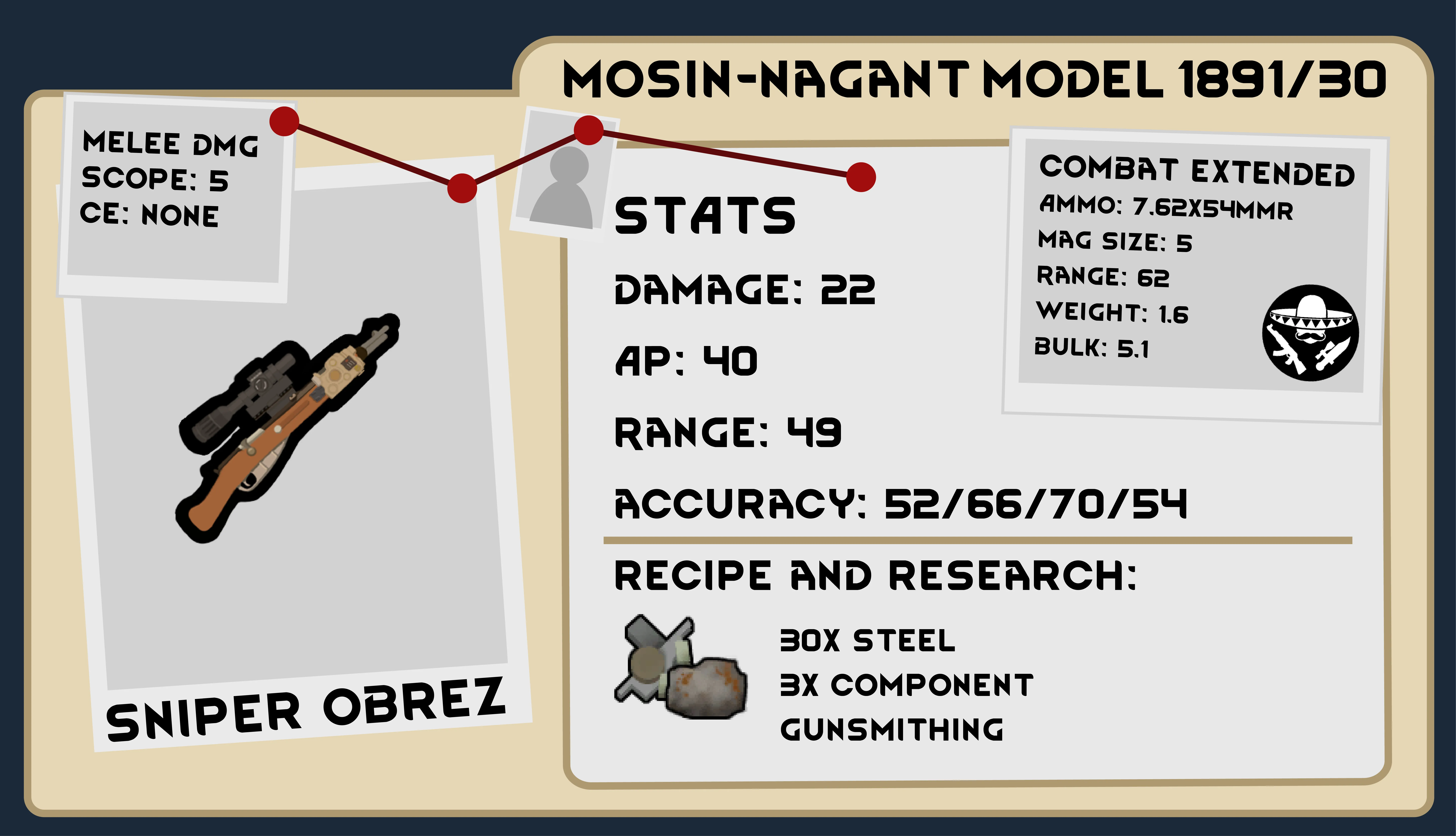 *The Mosin-Nagant is a cheap but still decent weapon, great for those who lack resources or want to mass-produce it. Alternatively, looting these bad boys from scavs would also be a great idea.*