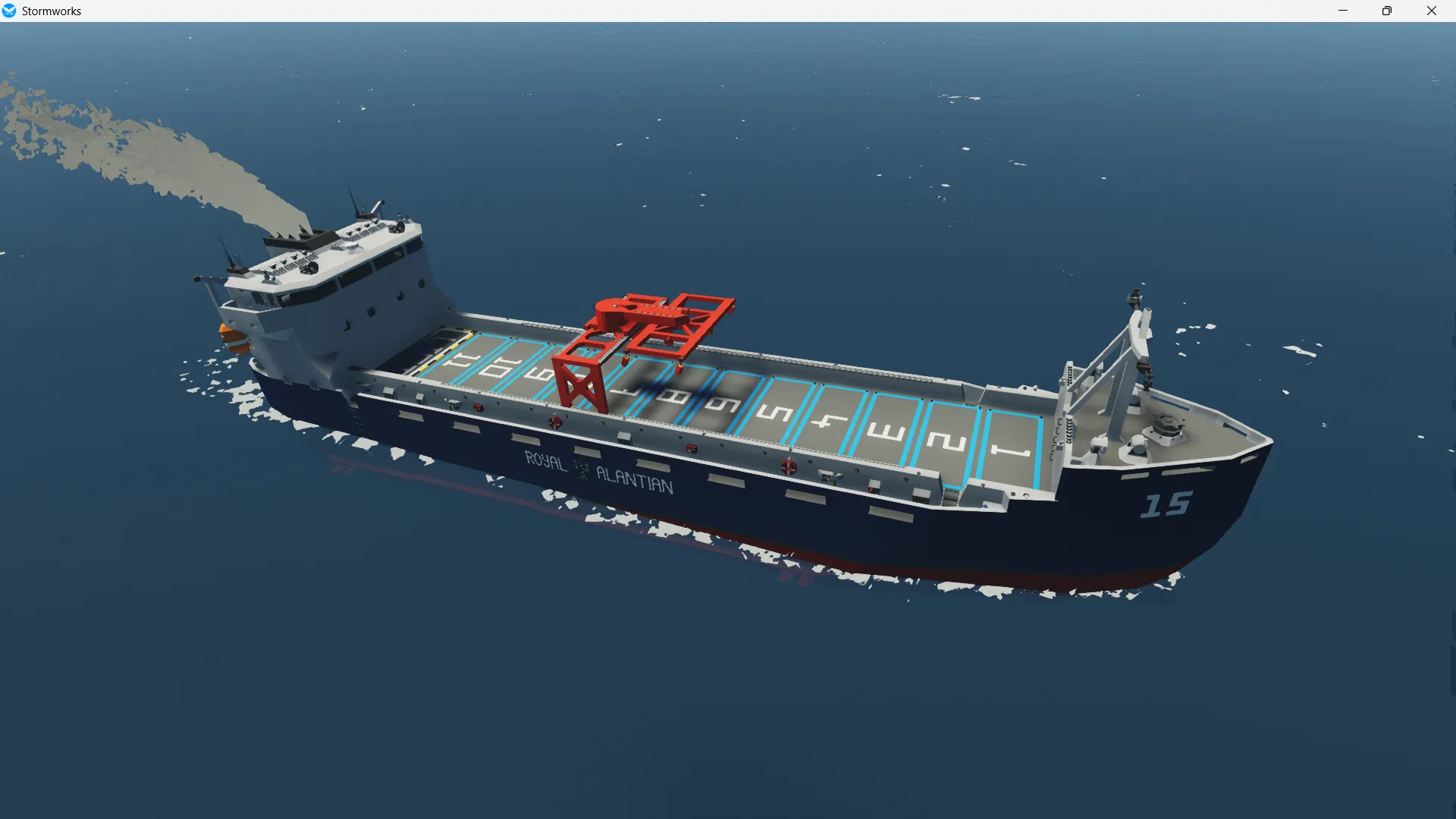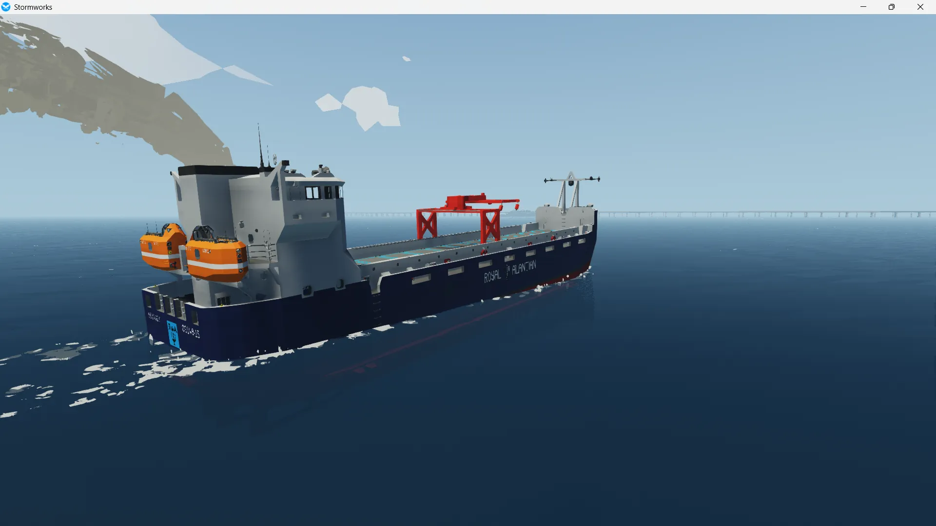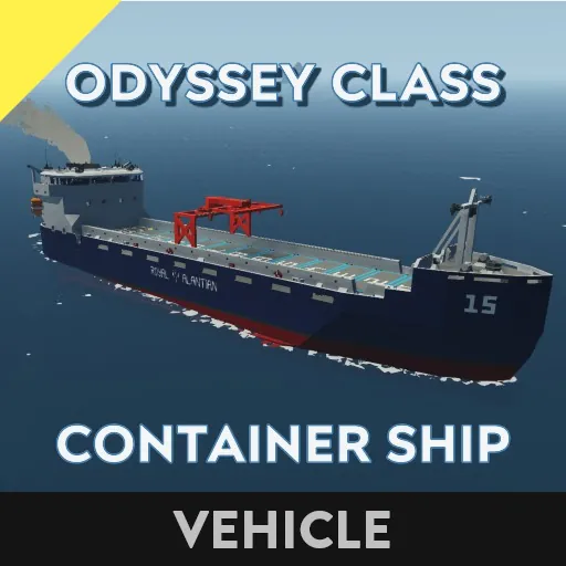 The Odyssey class container ship is the most common container ship in service with the Royal Alantian Shipping and is optimized for maximum space efficiency allowing it to carry 20+ containers. the ship is designed to fit inside the standard dock and comes equipped with 2 LB9 Samaritan Lifeboats. its small size and high capacity make the ship ideal for transporting large numbers of containers between small docks. the ship also has a self loading crane that makes loading and unloading the ship easy and fast.