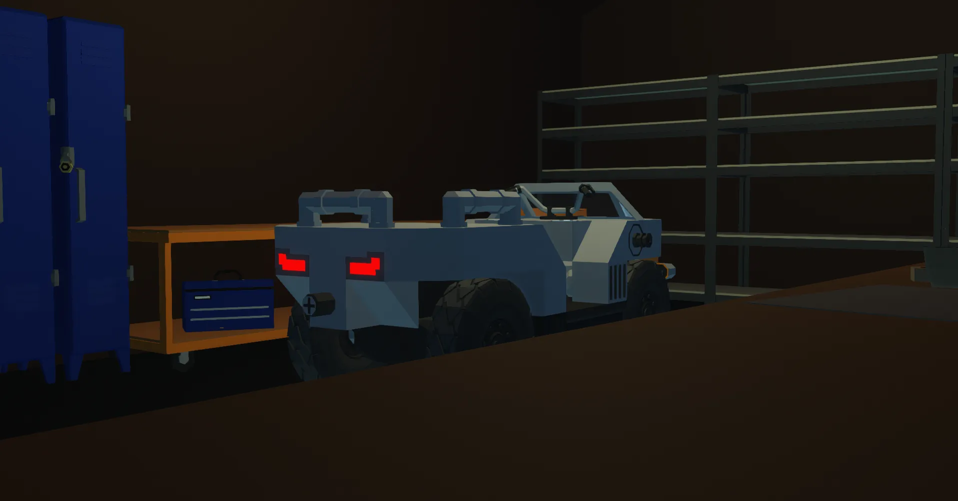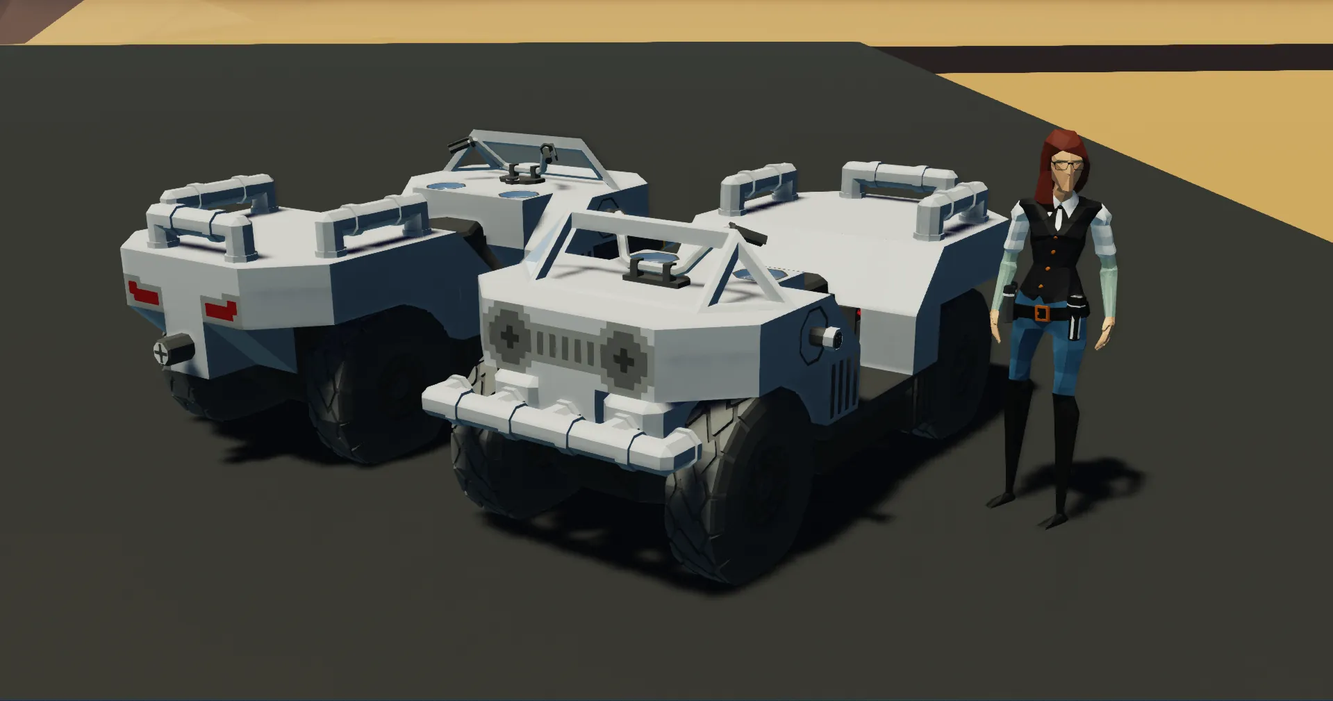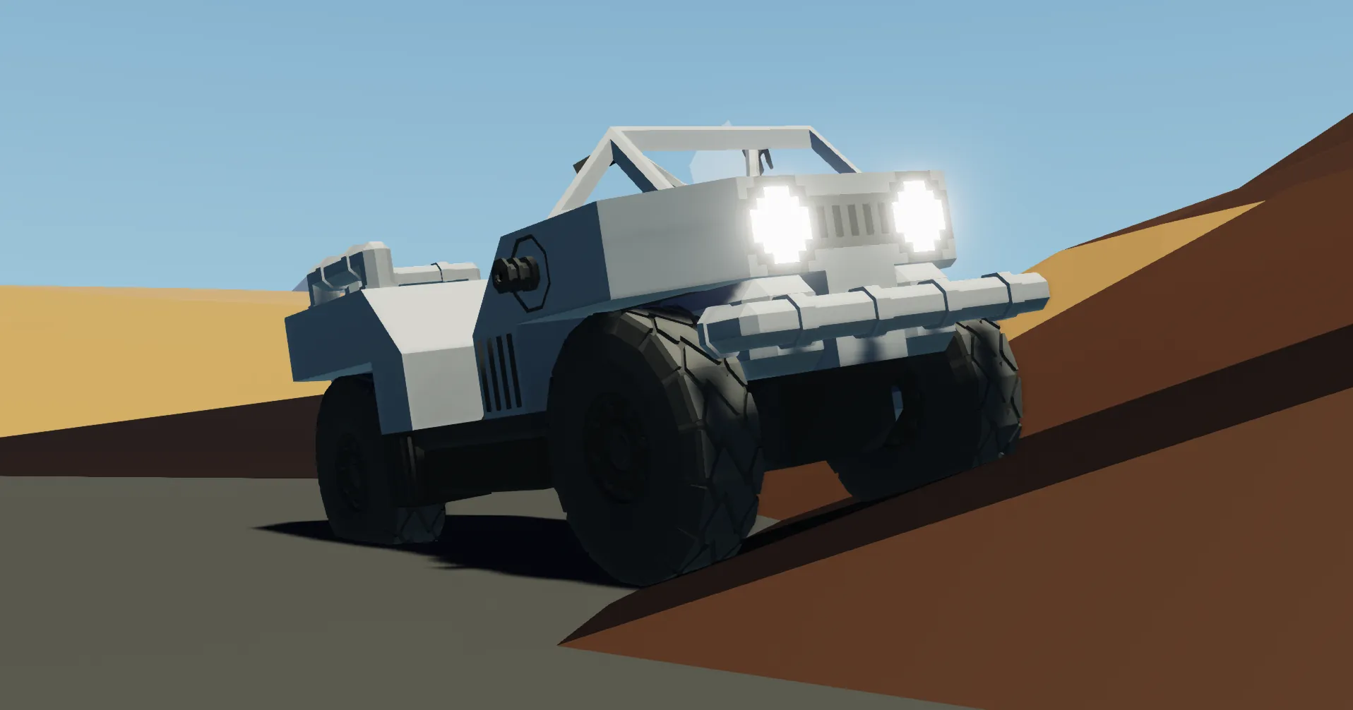 The PWLCS-1B4 'Gilbert' is a 4x4 All Terrain Vehicle built to be as rugged and reliable as possible for military service. With it's high power output from a custom 2 cylinder engine and it's low center of mass, this vehicle is extremely friendly to even the most beginner drivers, only at the cost of it's speed.