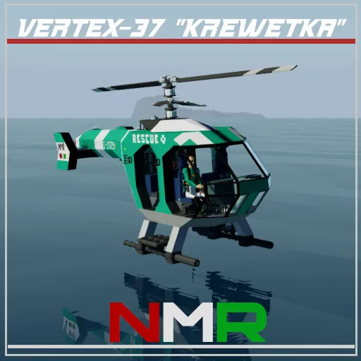 Vertex-37 "Krewetka" is a light multipurpose helicopter developed in 2017. With its excellent flight characteristics, it stands out from other competitors in its class. This sample was purchased by the NMR rescue organization and processed for the needs of rescue and reconnaissance coastal line.