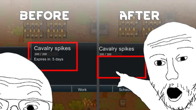 Makes cavalry spikes last forever. In the original mod they disappear after five days. That's it.