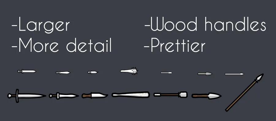 This mod replaces the vanilla sprites for melee weapons with higher resolution, better looking assets. That is the only thing the mod changes, so there should be 0 compatibility errors with other mods. This mod doesn't change any recipes, damage, etc. This is a purely cosmetic change.