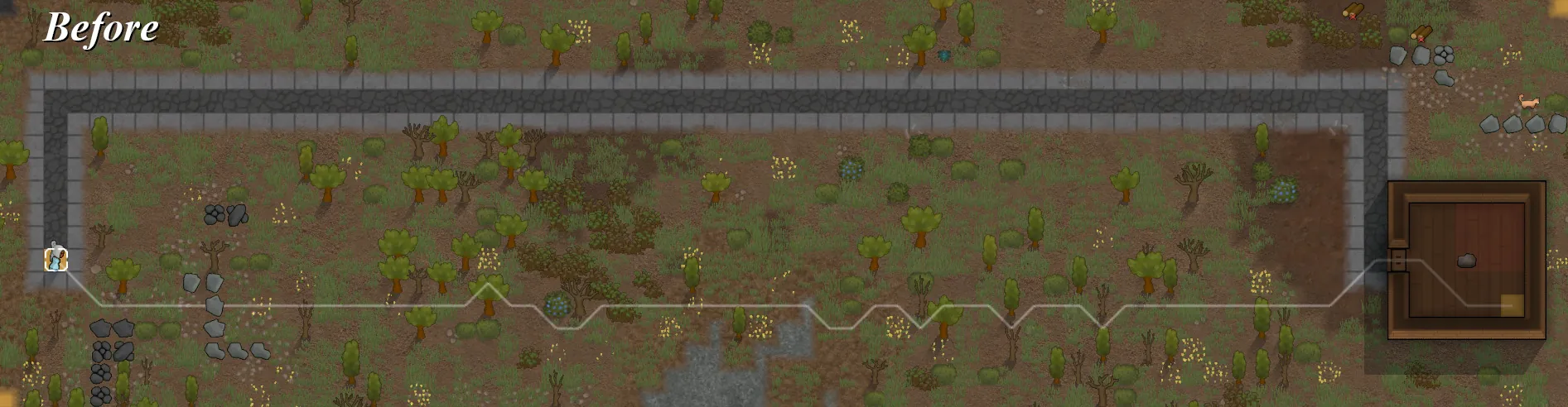[url=https://steamcommunity.com/sharedfiles/filedetails/?id=2341486509] Perfect Pathfinding[/url] removes optimizations and adds complexity to the algorithm calculations with the goal of finding optimal, perfect paths.