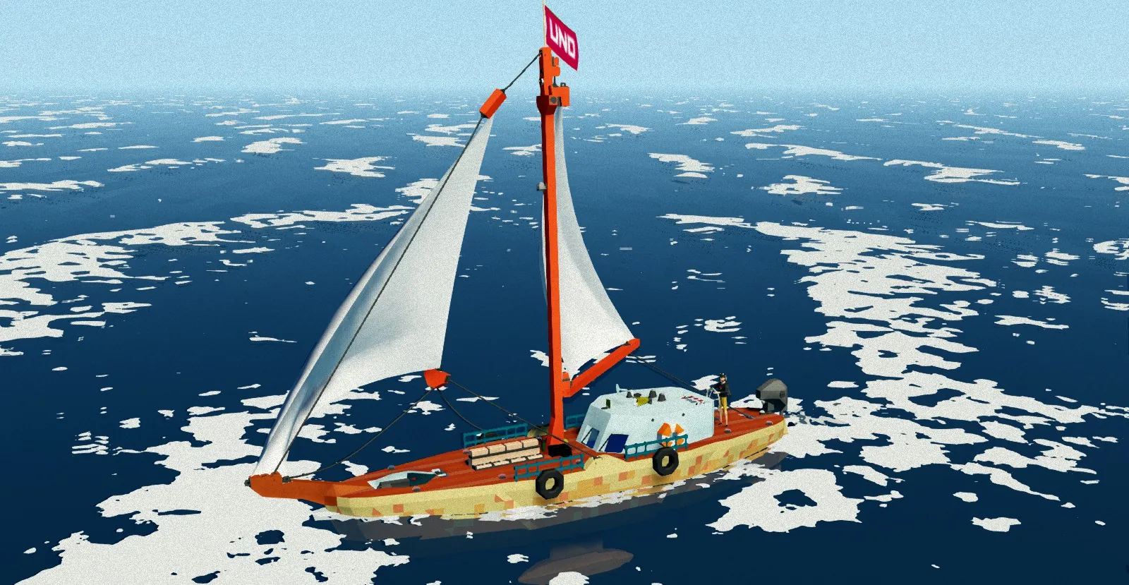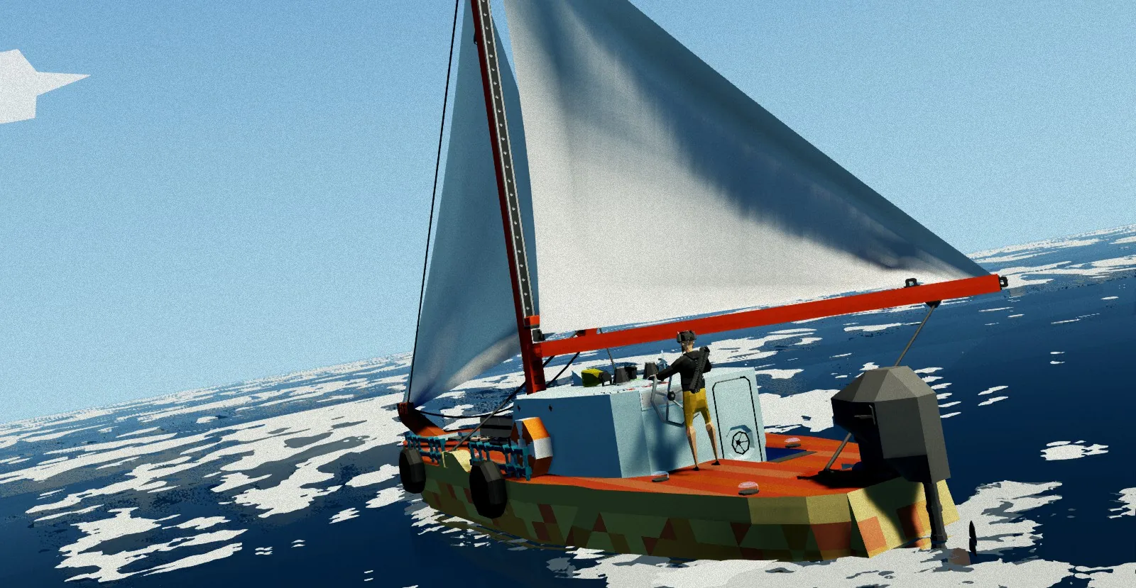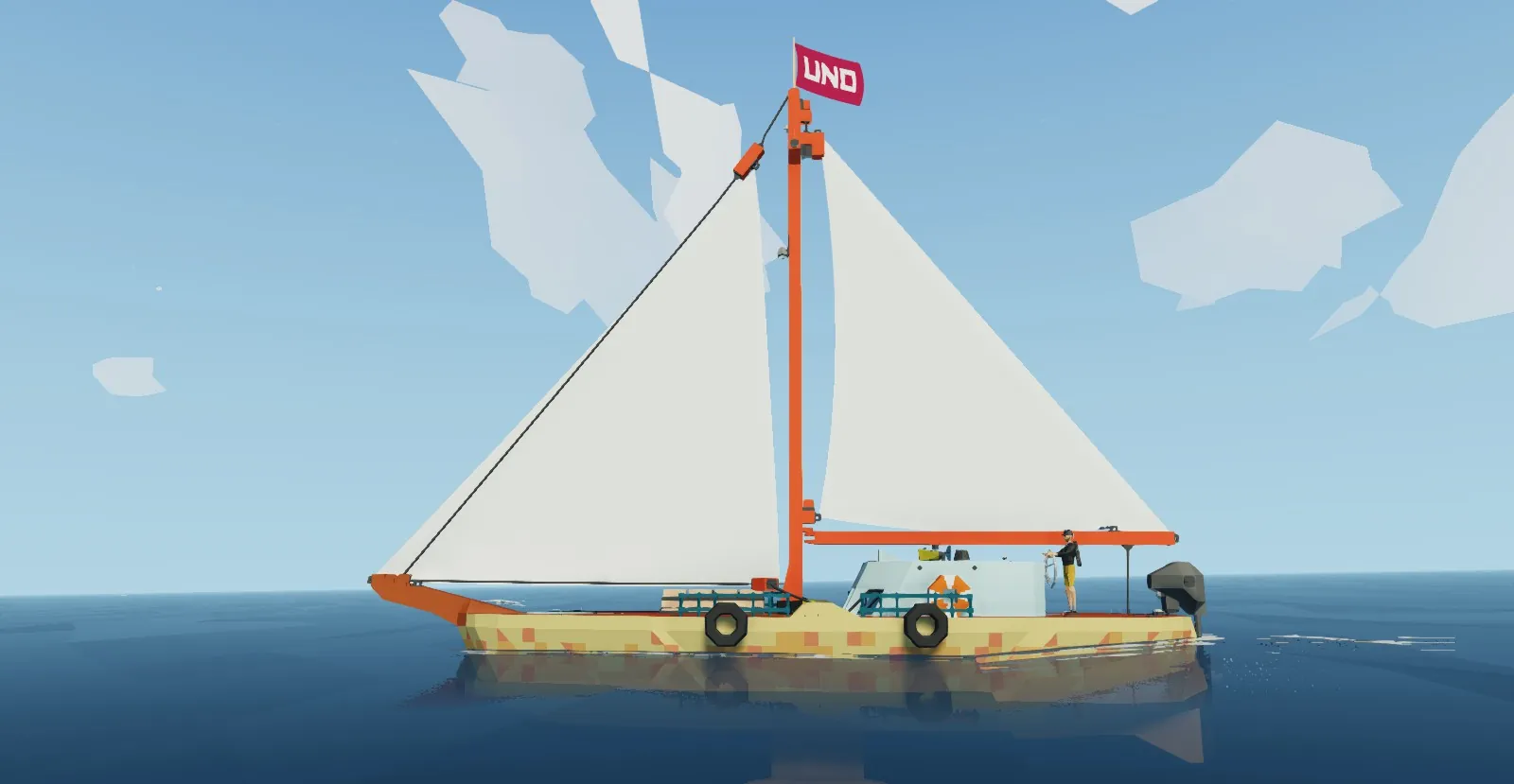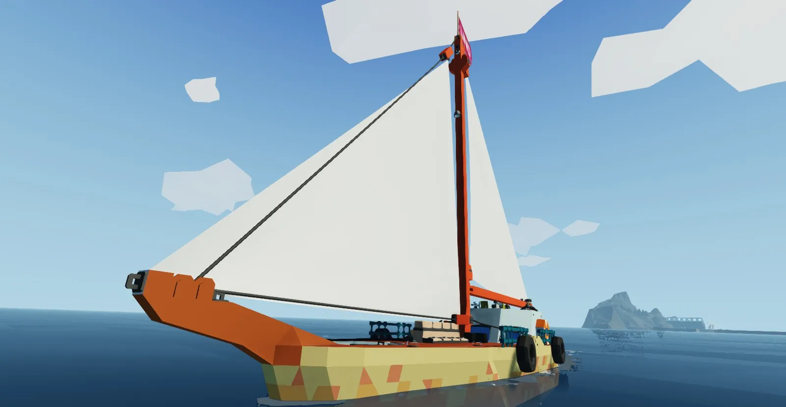 A small sail boat with both Main and Jib sails as well as a small electric motor. Contains both crew quarters and outside seating and helm. Equipped with lights, anchor, accurate sail, boom, and spools. Please enjoy.