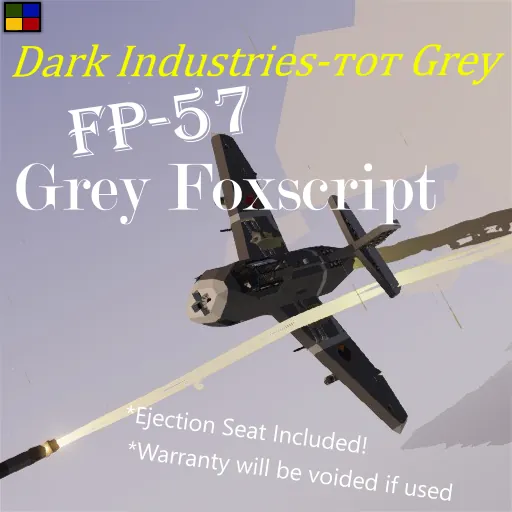 The FP-57 "Grey Foxscript" is an Jet Fighter and Pursuit/Interceptor Aircraft with 2 chin 50. Developed by the тот Grey Aircraft Designer, and funded by Dark Industries, the Foxscript is a 1st generation jet aircraft of Dark Industries. caliber machine guns, 2 20mm Multi-purpose Autocannon, and 4 hard-points for missiles, bombs, or drop tanks. Technically, the Foxscript is an 'Swing' fighter.