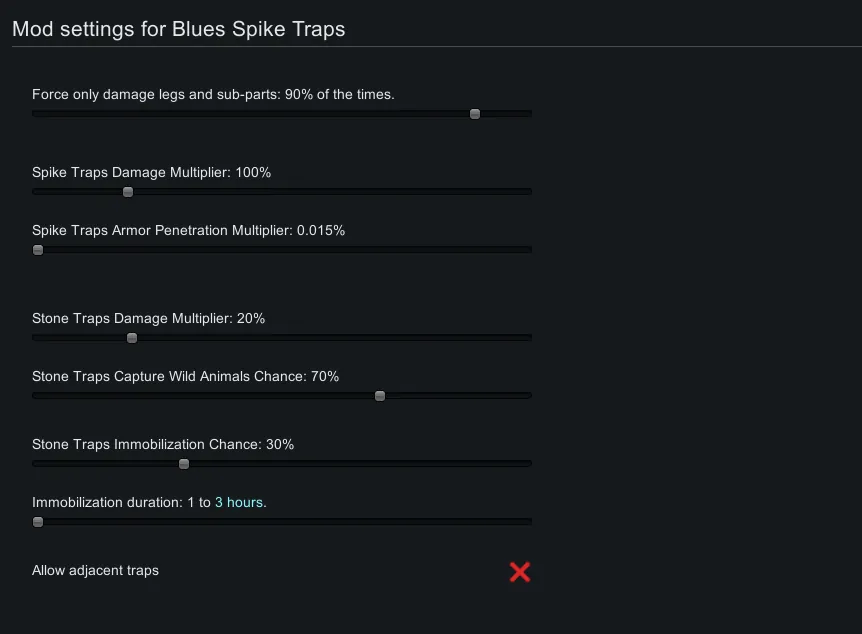 [*] Spike traps primarily target legs. (It is random in vanilla.)