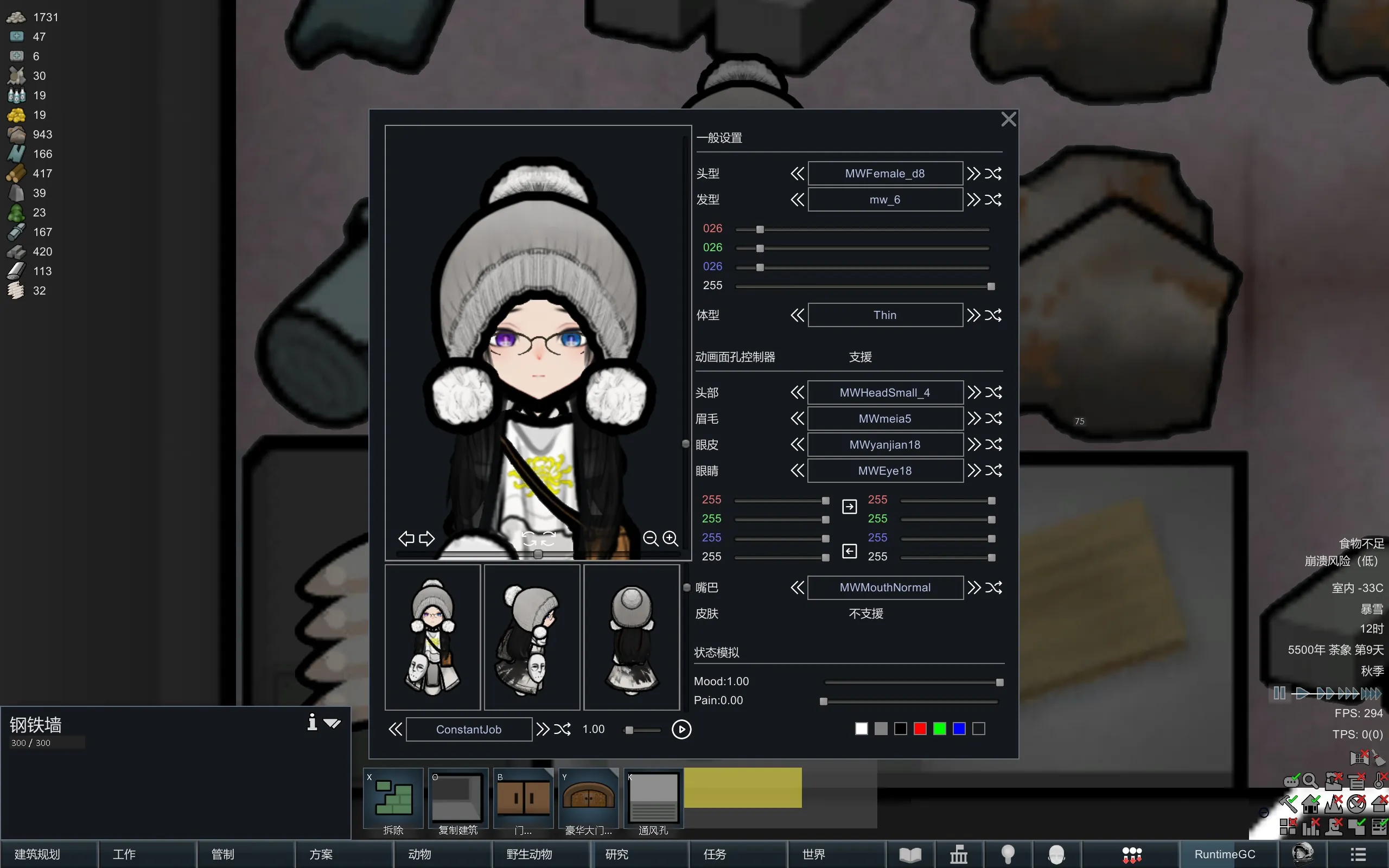 半成品。 平时我没有用面部动画的习惯,所以如有奇怪的地方可以在评论区留言。 配件多且杂,不保证每个搭配都有人形。 如果贴图错误,请首先看看RimPy转的贴图,它并不会随我的更新而更新。