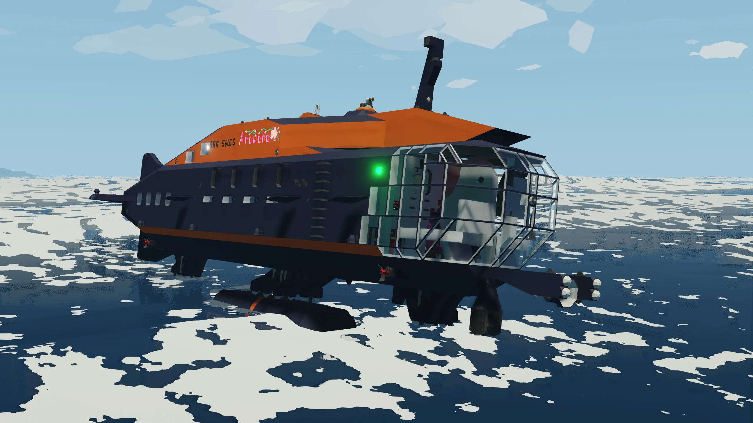 This high speed submarine is packed with features and the necessary equipment to complete multiple types of missions around Stormworks.