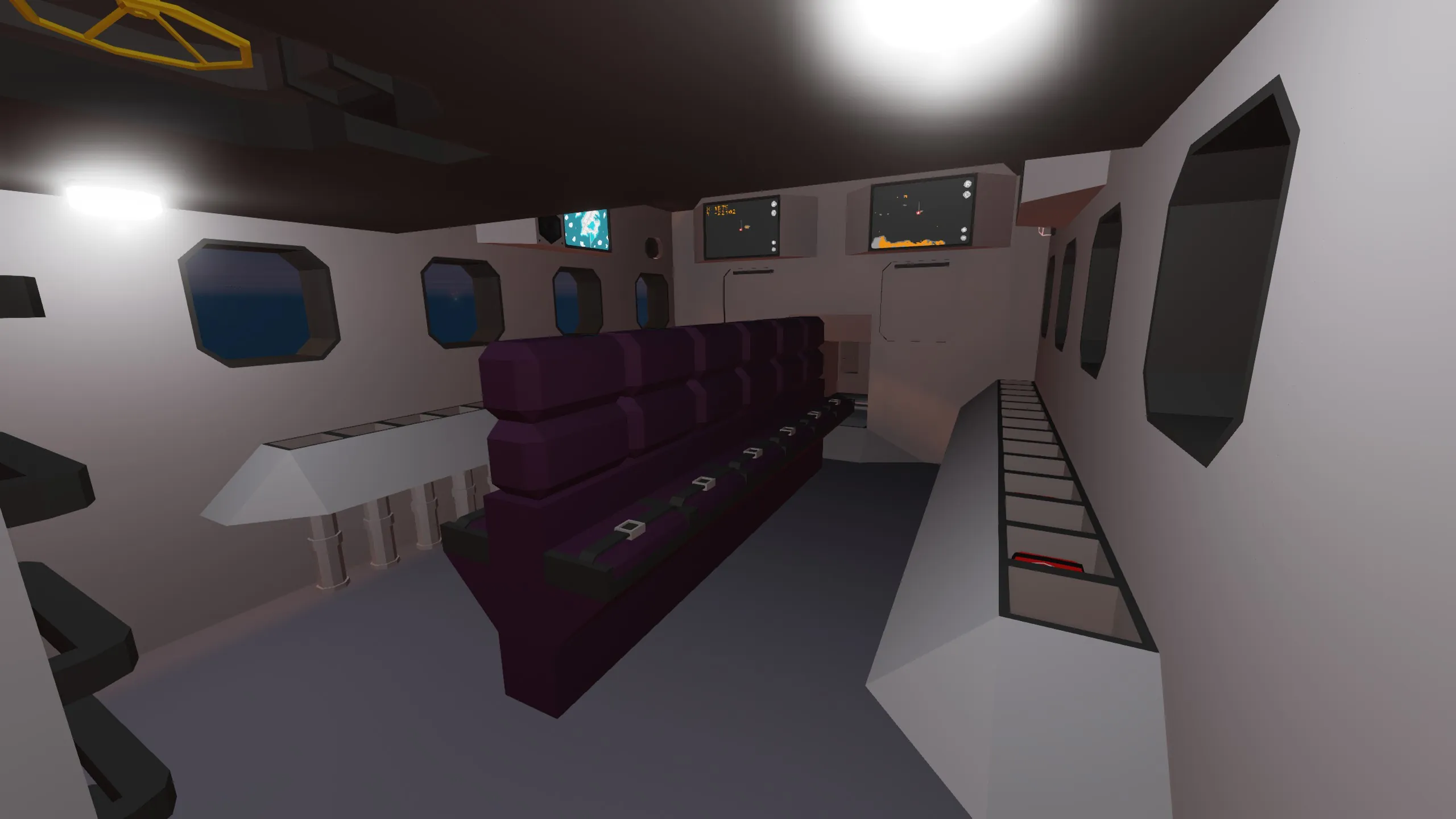 Map screens and televisions for the passengers