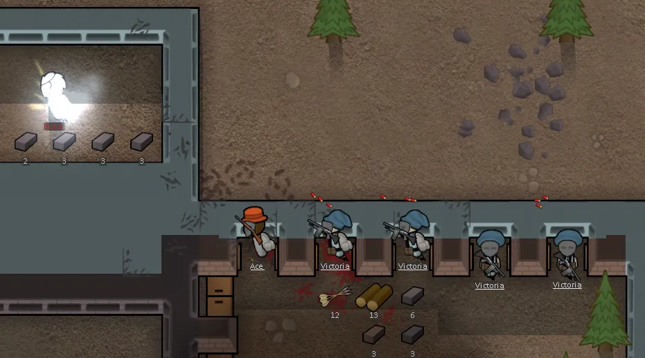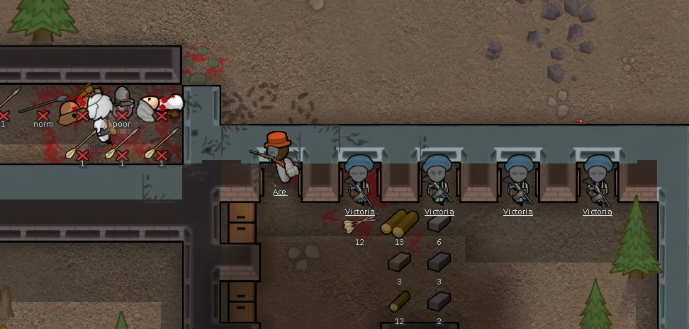 Combat Extended changes the way friendly-fire works. Part of the way they handle it is that if a friendly pawn is in the way of your target, you don't even try to shoot. However, they fail to take leaning pawns into account and this can result in frustrating brain injuries.