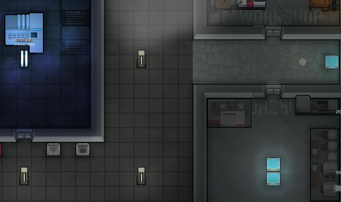 每个数字储存单元可以储存256个堆栈,可以在房间内建造数据拓展器进行拓展,每个拓展器可增加128个堆栈。