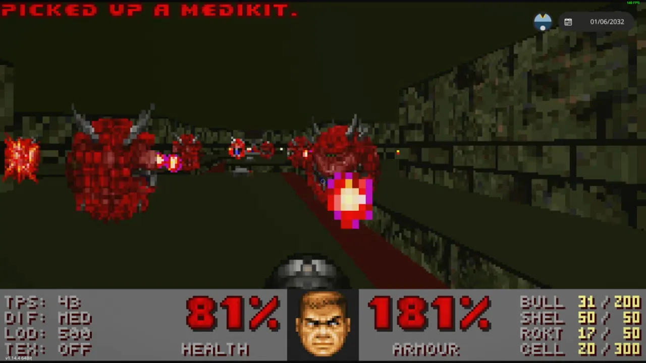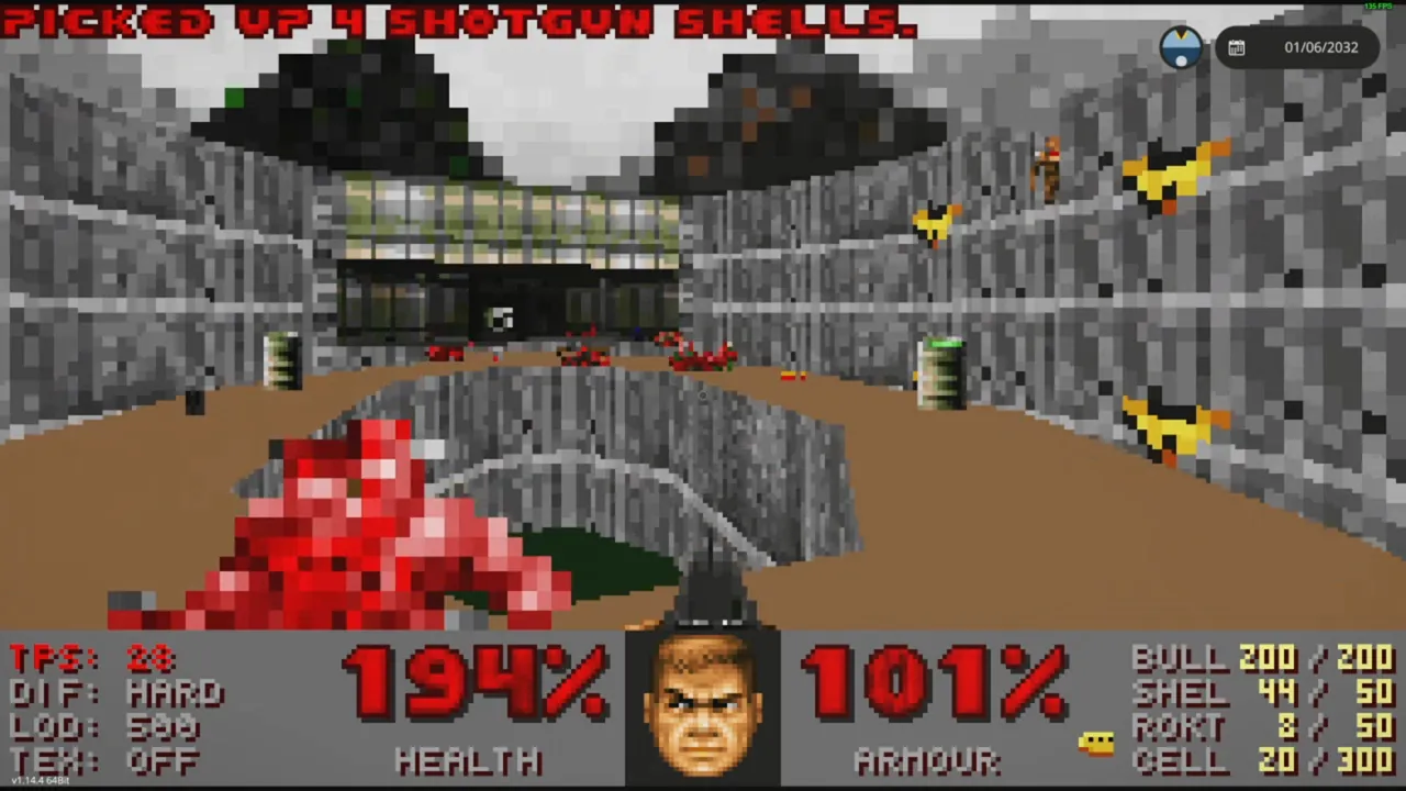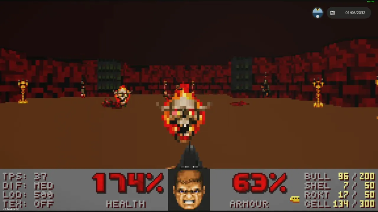 If you want to see what this is imitating then buy Doom + Doom II on steam, boot in DOS mode, disable CRT filter and music, change sound effects to PC SPEAKER, and rebind the controls to match the ones used here