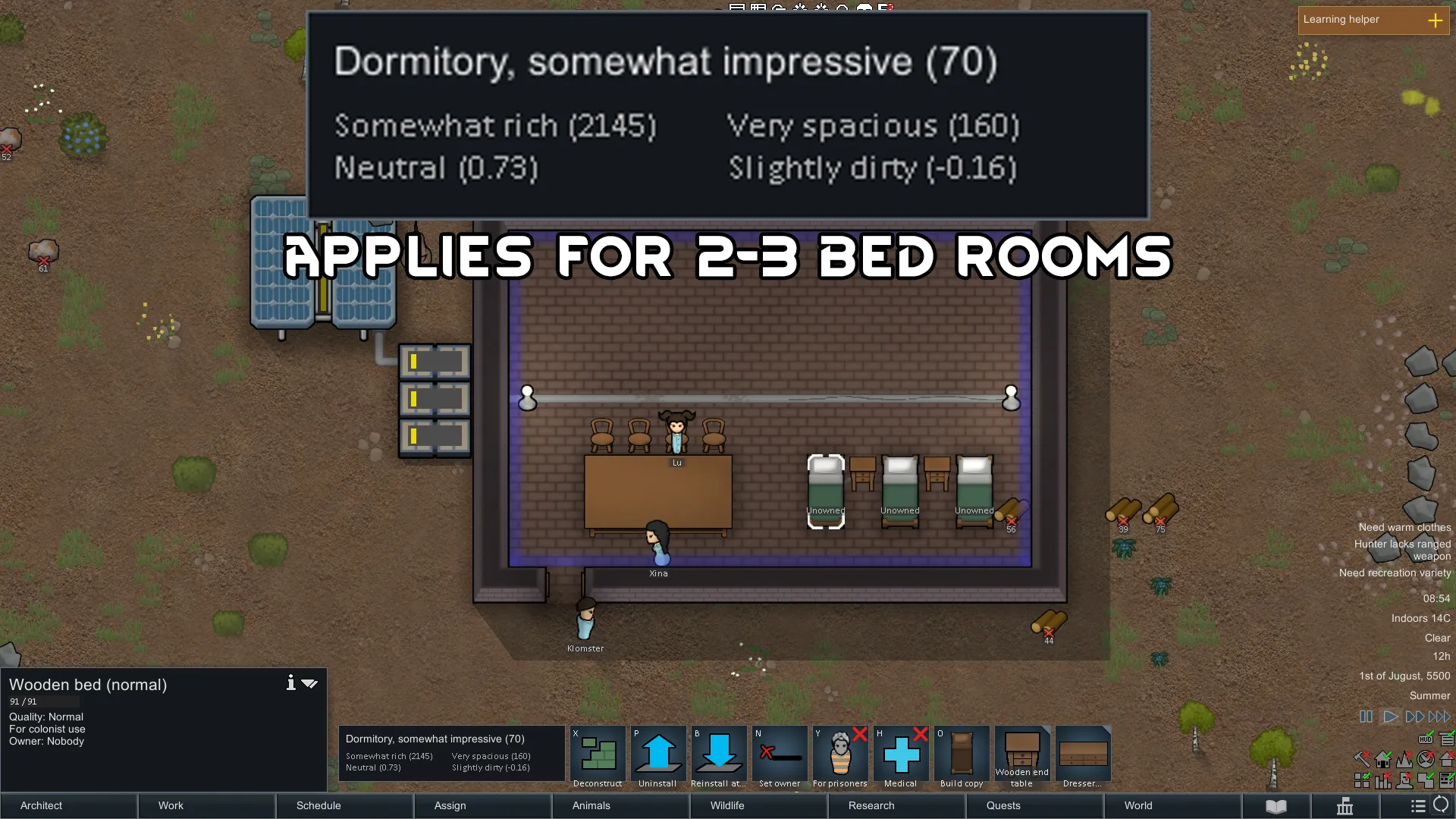 The difference between bedroom and barracks bonuses is extreme. This mod adds dormitories, a room type that creates a compromise solution!
