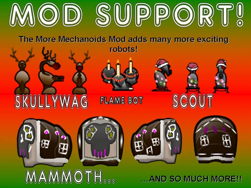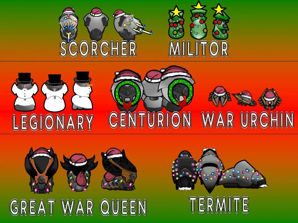 This is a Mod that I updated, and unlike the new Sprites that I added, the Sprites for the Centipede, Scyther, War Urchin, and Pikeman are not original works, because the user Arpomo6 made those! The original Mod can be downloaded for V1.2 and older [url=https://steamcommunity.com/linkfilter/?u=https%3A%2F%2Fwww.github.com%2Fskyarkhangel%2FHardcore-SK%2Ftree%2Fmaster%2FMods%2FChristmasnoids]by clicking this link[/url][www.github.com]!
