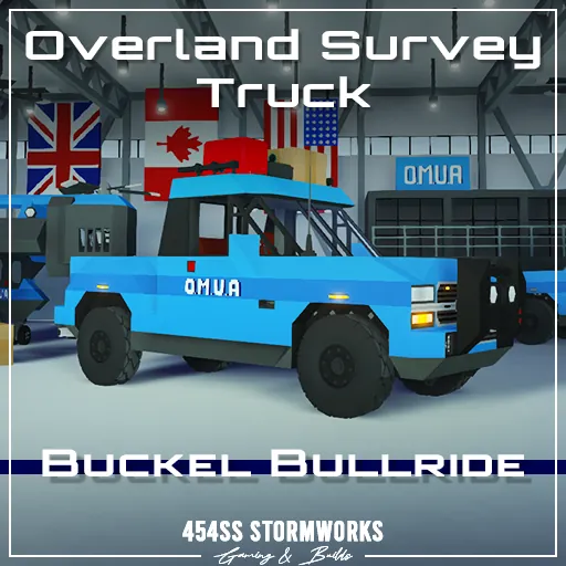 The Buckel Bullride is a retro inspired sport pickup truck, produced since 2020. Inspired by the 1980's Buckel pickup trucks, the Bullride features a retro look. The short bed is not intended for large cargo in the bed, but is capable of heavy towing in either hitch or gooseneck configurations. This particular unit is owned by OMUA (Oceanic Marine Underwater Agency), a (fictional) multinational marine and research agency. It features gear for overland explorations, spare fuel and repair equipment.