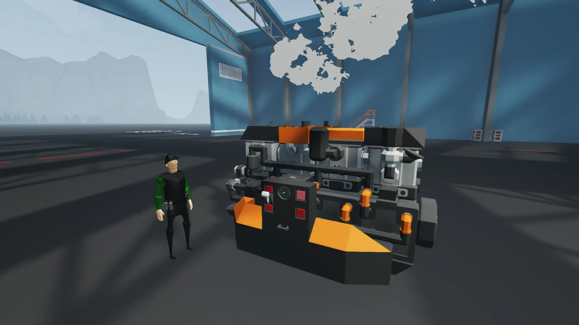 This 3x3 modular engine is turbocharged and has 3 electrical radiator on each side of the crankshaft.