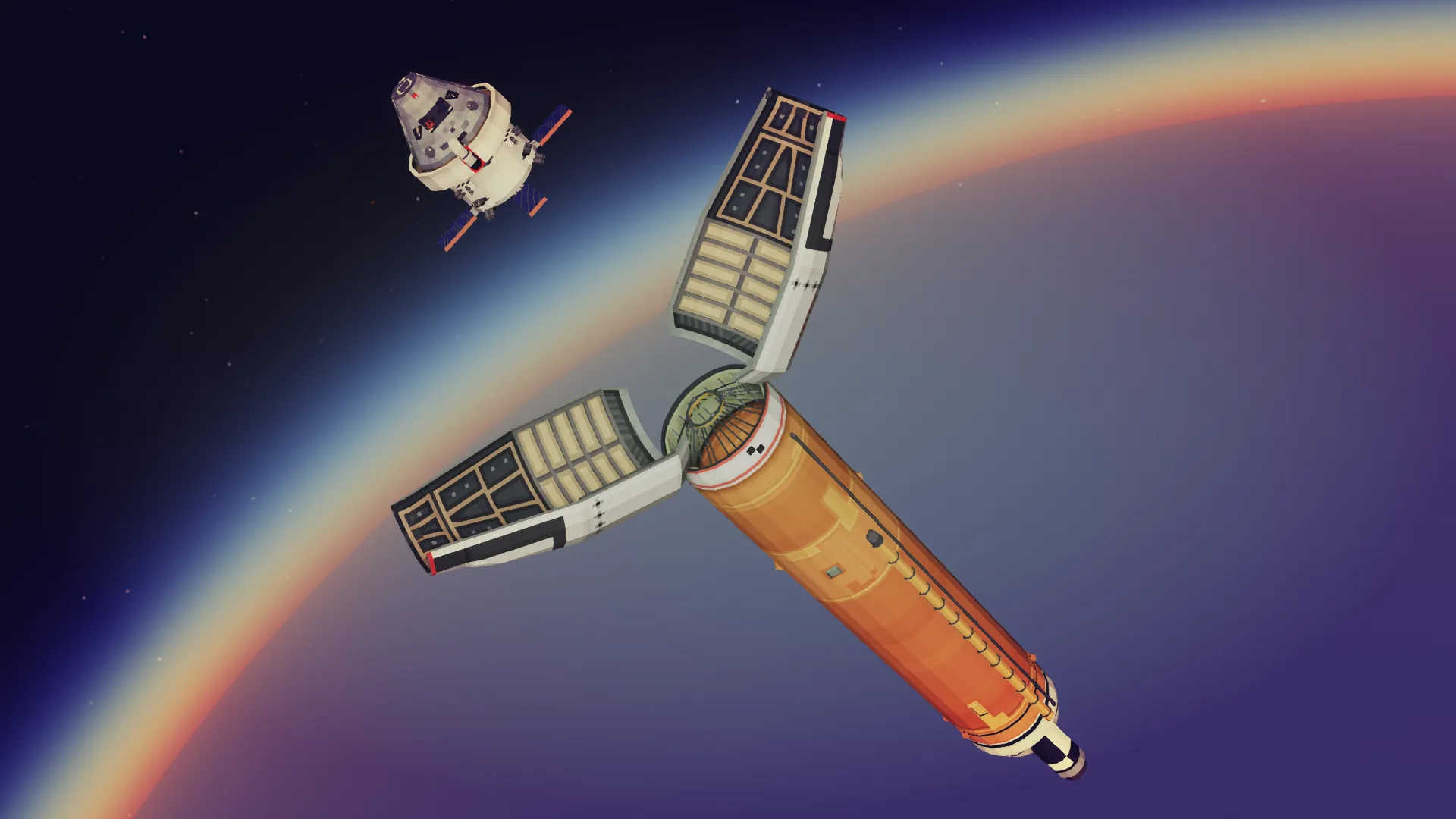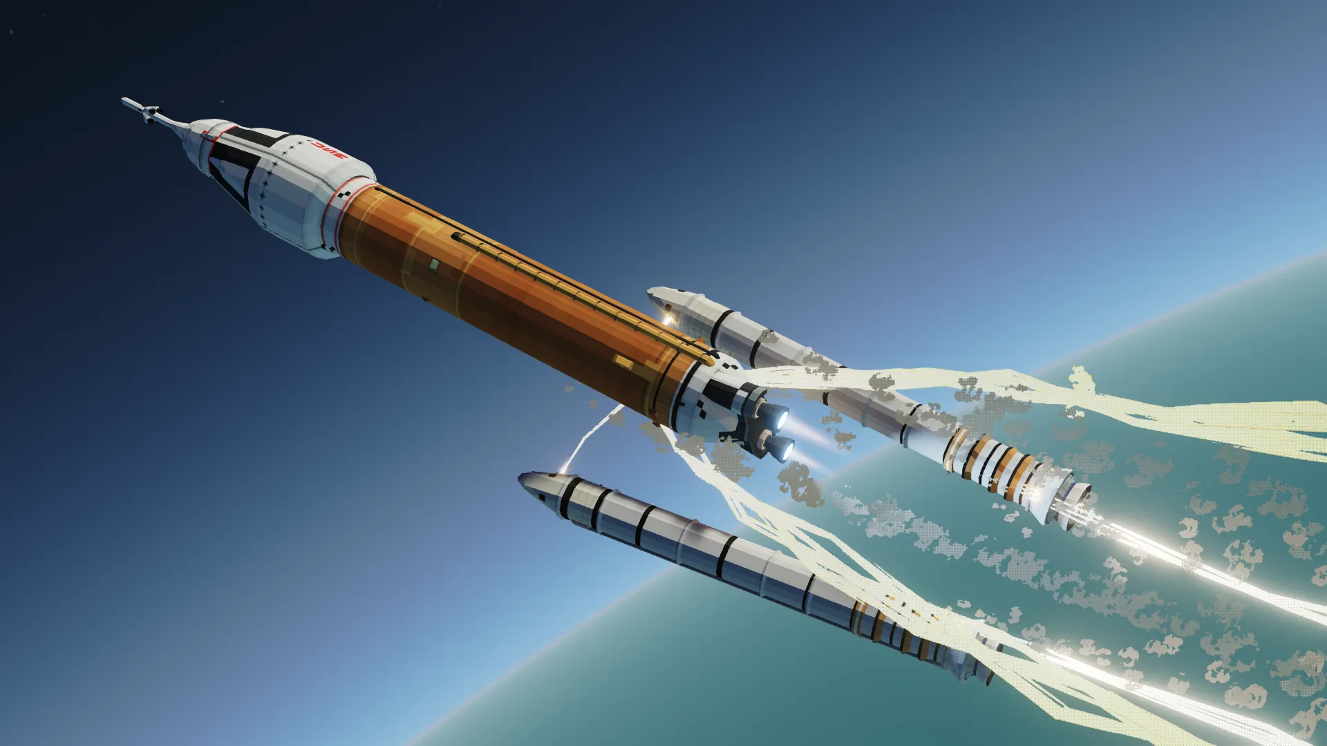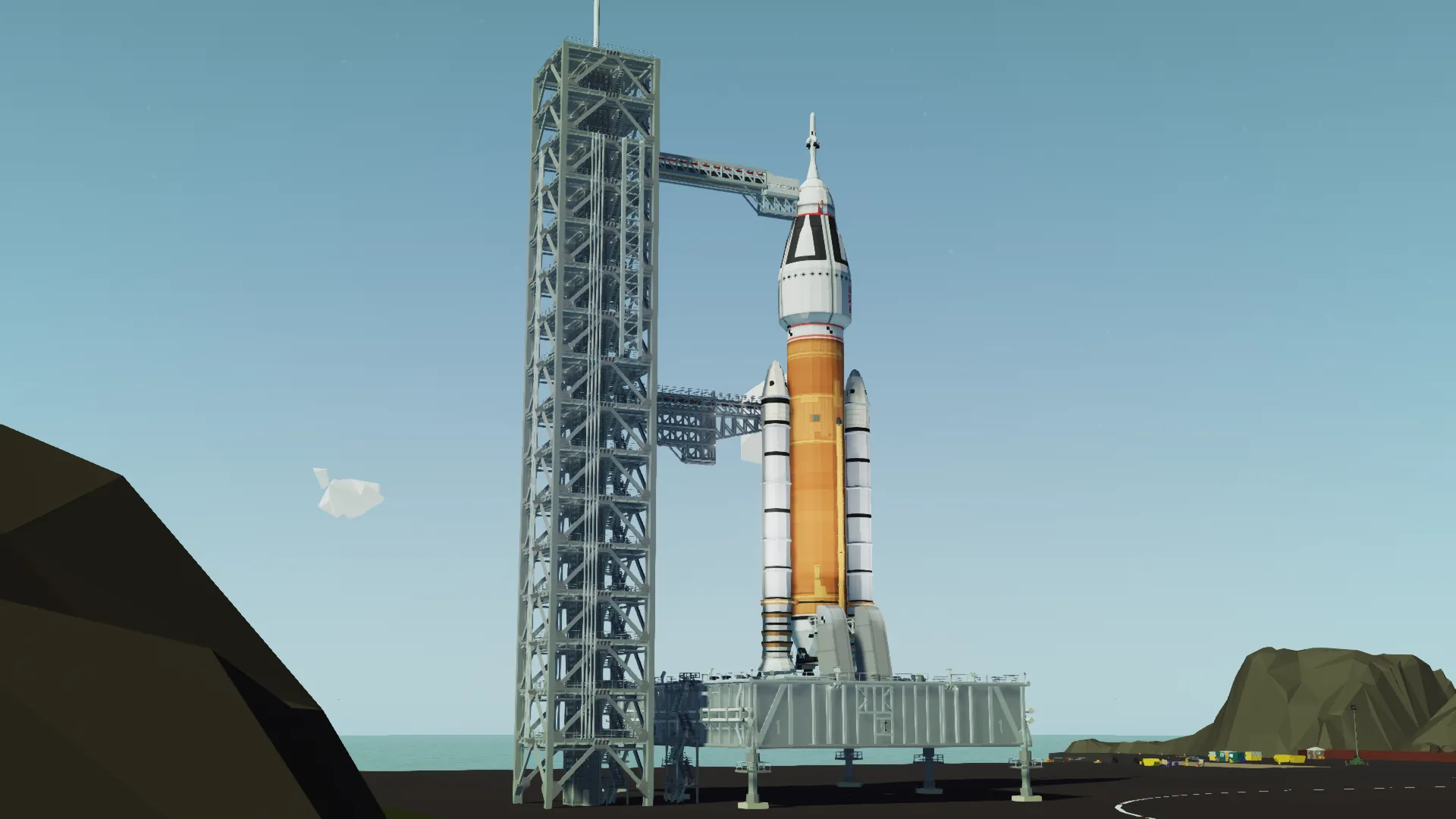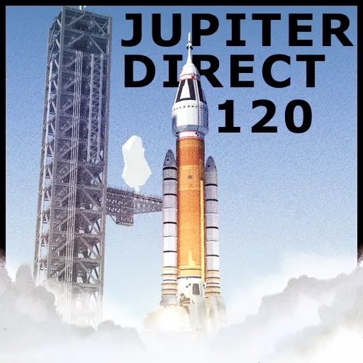 This is a 1:1 replica of the Jupiter 120 rocket of the Direct program. Proposed in 2009, the Direct program was planned to fully replace both the Space Shuttle and Constellation programs, while only using existing Shuttle and Constellation components and tooling. This rocket, Jupiter 120, was the smallest of the proposed Jupiter variants, with a single stage, 2 solid boosters, and 2 Space Shuttle Main Engines powering the core stage. It also carries the Orion Capsule first made for the Constellation Program as a crew vehicle able to dock with payloads and deliver crew to the ISS.
