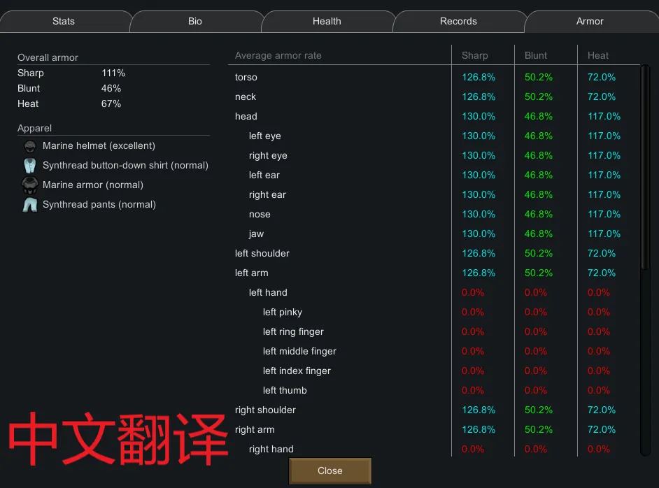 在殖民者信息界面额外添加一个护甲信息界面,显示各身体部件受穿戴衣物的具体护甲数值。