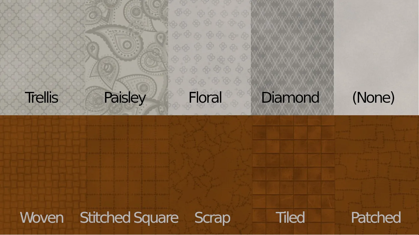 Updated: Option for textures Simple Tribal, Fancy Tribal and Greek Spiral