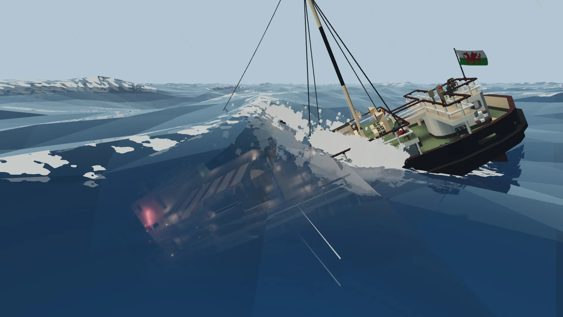 Turn up the wind and sail head first into waves, eventually she’ll sink (recommend around 60%)