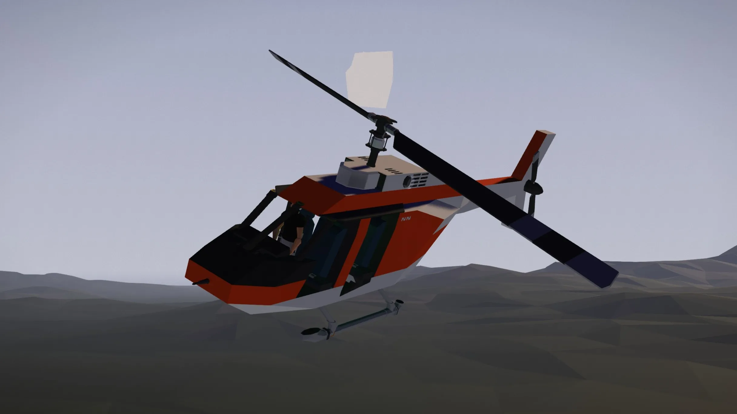 Functionally just a Bell 206 Jet Ranger with lower skids, this heli is just 5 blocks wide and is only 650 mass ingame. It harkens back to a simpler time where a small, classy, easy to fly helicopter was all the rage.